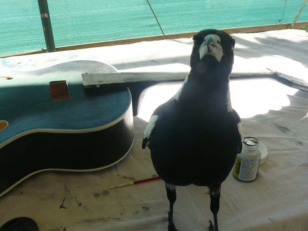 magpies are great apprentices until they crap on wet paint or oil LOL She also likes to pick up small tools or parts and throw them on the ground