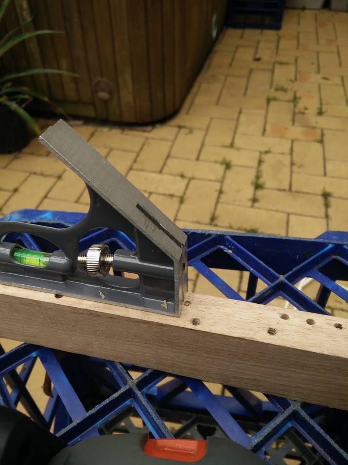 I used a hand drill and my notched square to help keep them straight - same as the previous post.