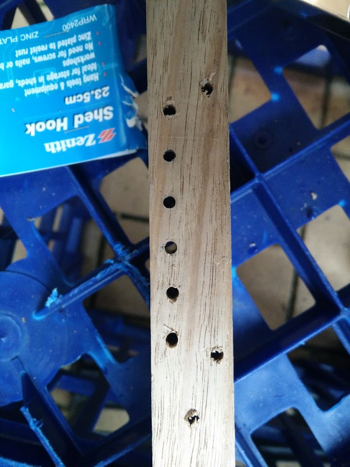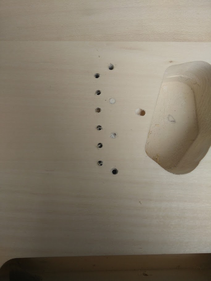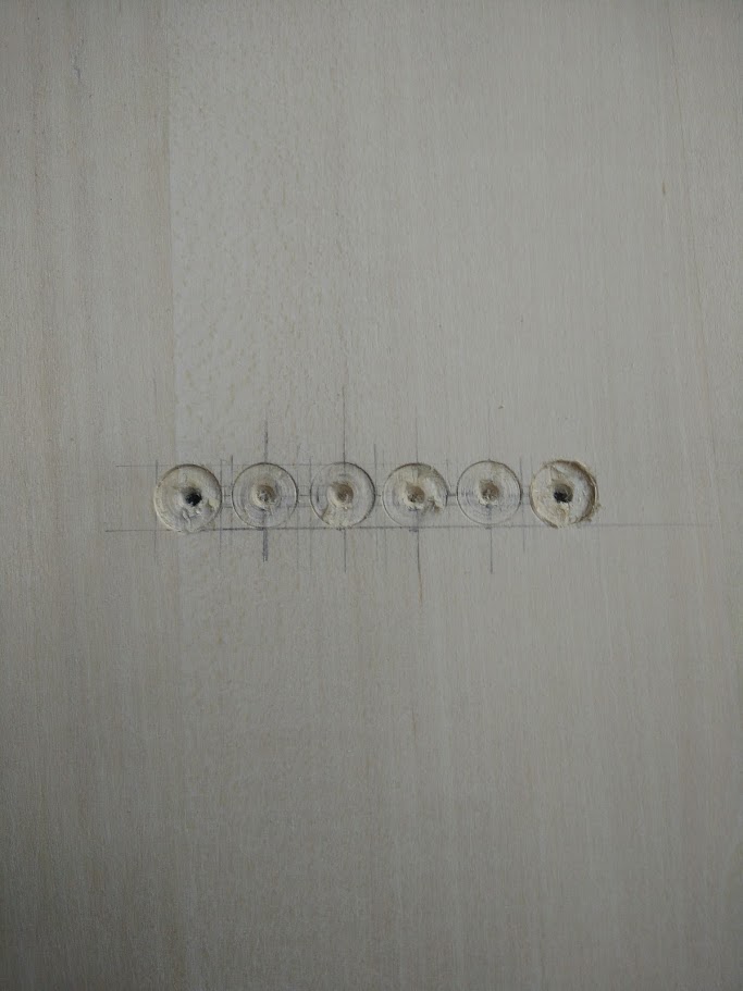 I've been practising with the forstener bit but it's still a bit dodgy. My thinking though is that close enough is ok - the smaller holes just have to be close but not perfect since they're covered by the bridge anyway. As for the rear ones, as long as the ferrule holes are straight then it should be ok, right?