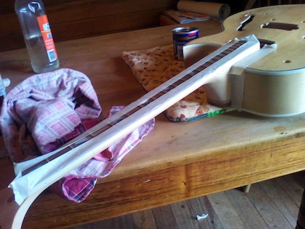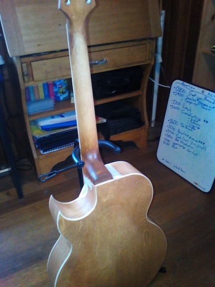 Finished maybe. Still touching up fret ends and whatnot. Very low fast action. Plays really well.