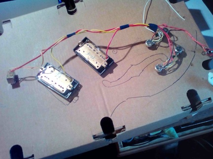 Maybe I will redo all this one day with shielded wire. It's great fun putting it into the guitar!
