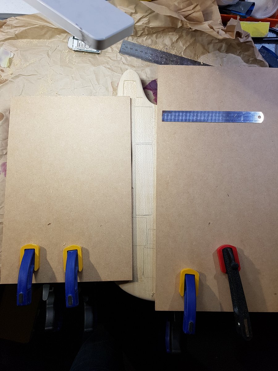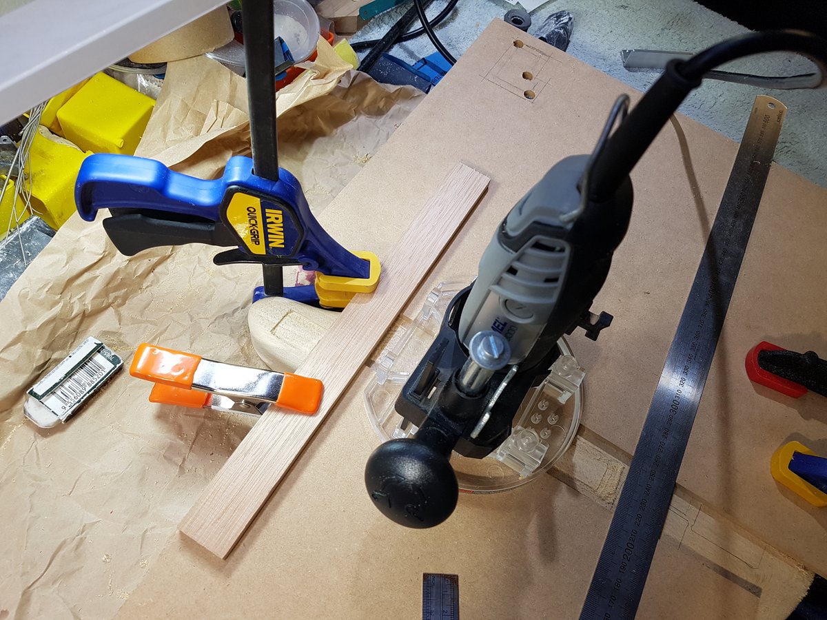 I first marked where each plate was going, and then used MDF sheets to build a jig to guide the dremel plunge router base.