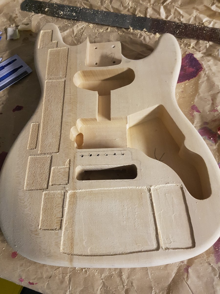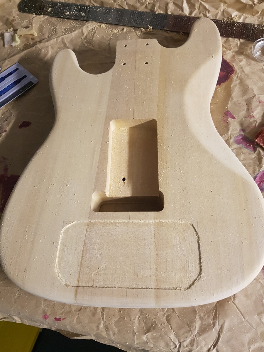 A bit of progress. I cleaned up all cuts and sanded the body to 240.