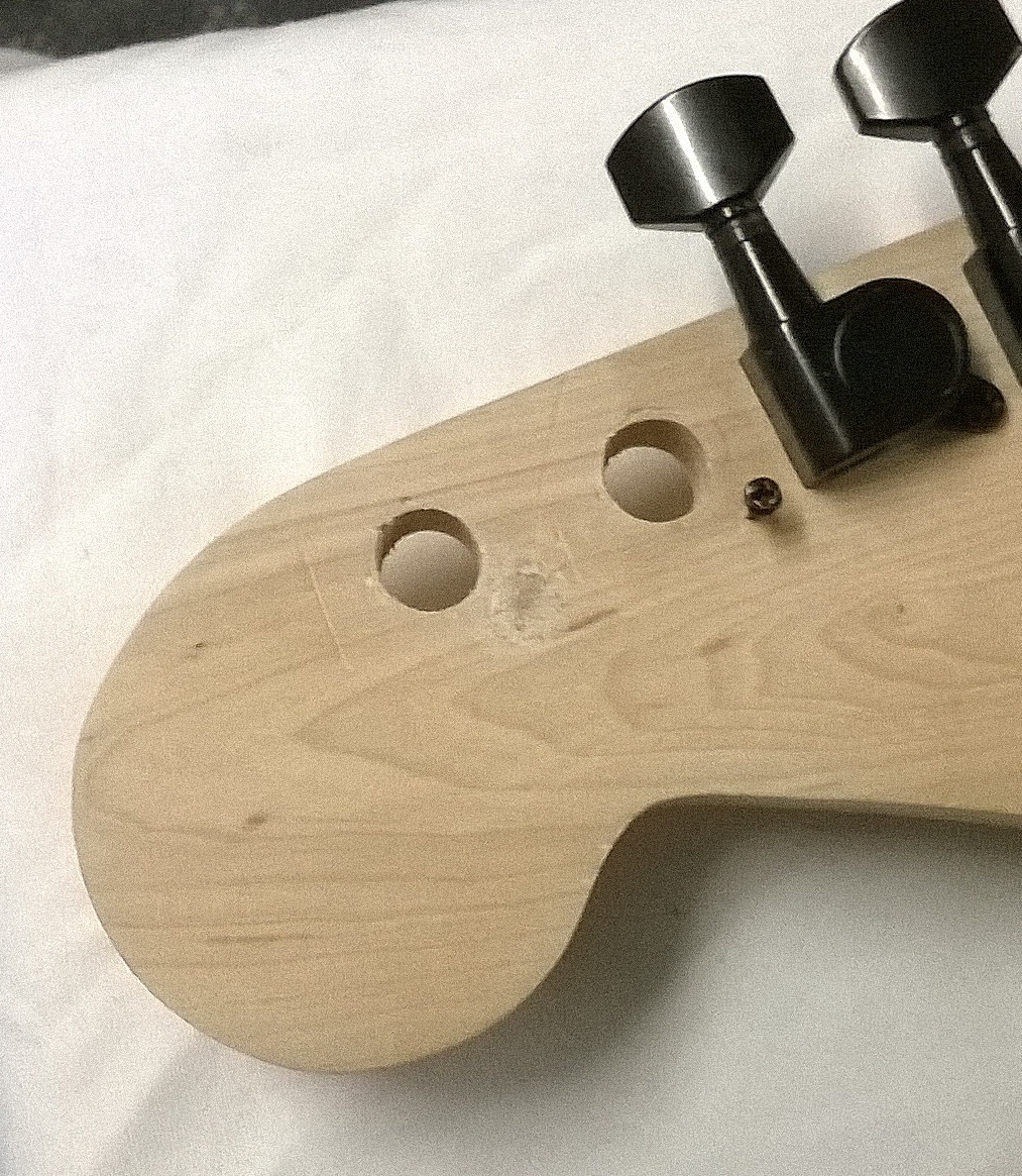 I also do a test drill in scrap to find out the correct drill size. Think the tuner screws are 1.5mm drill bit. If the drill hole is too small your chances of snapping the head off increase.