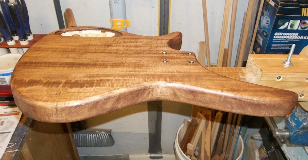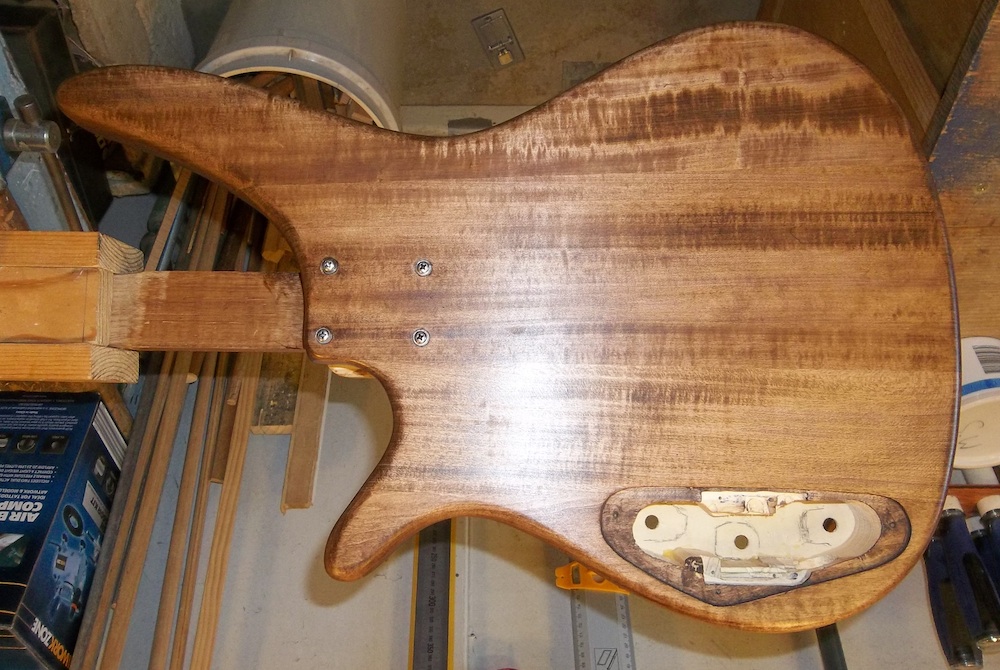 5 days drying and then a light rub with 0000 steel wool and the body got it's second coat of Dark Tease.