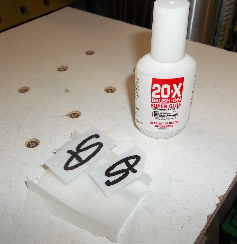 Taped up, black super glue, and dots at the ready.