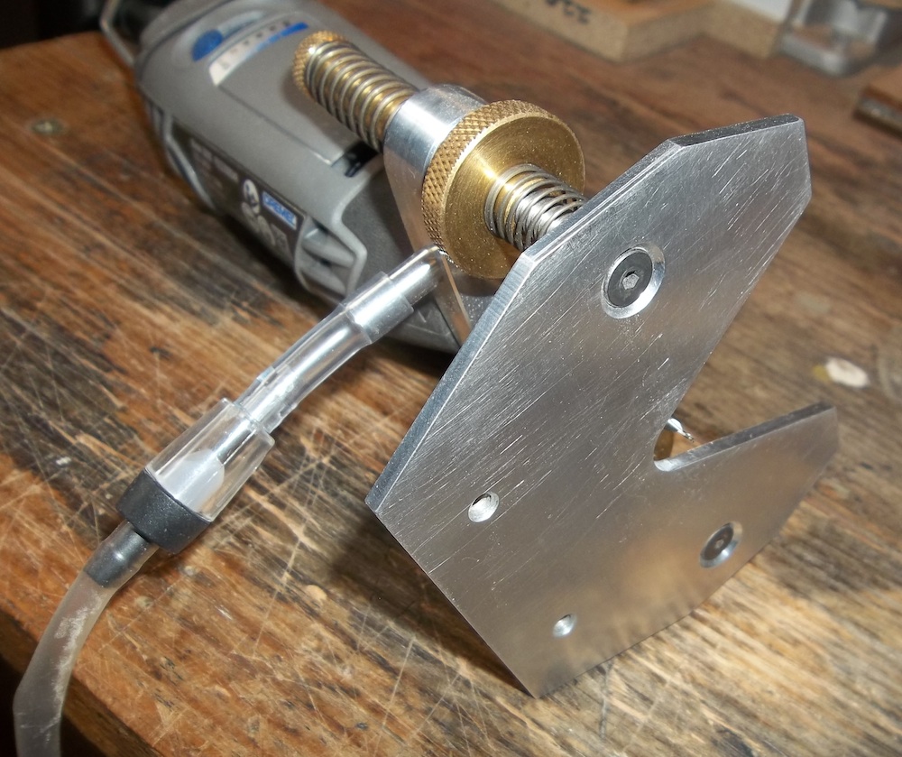 Dremel with fine downcut router bit and aquarium air pump. I'd like a bit more air flow but it's enough.