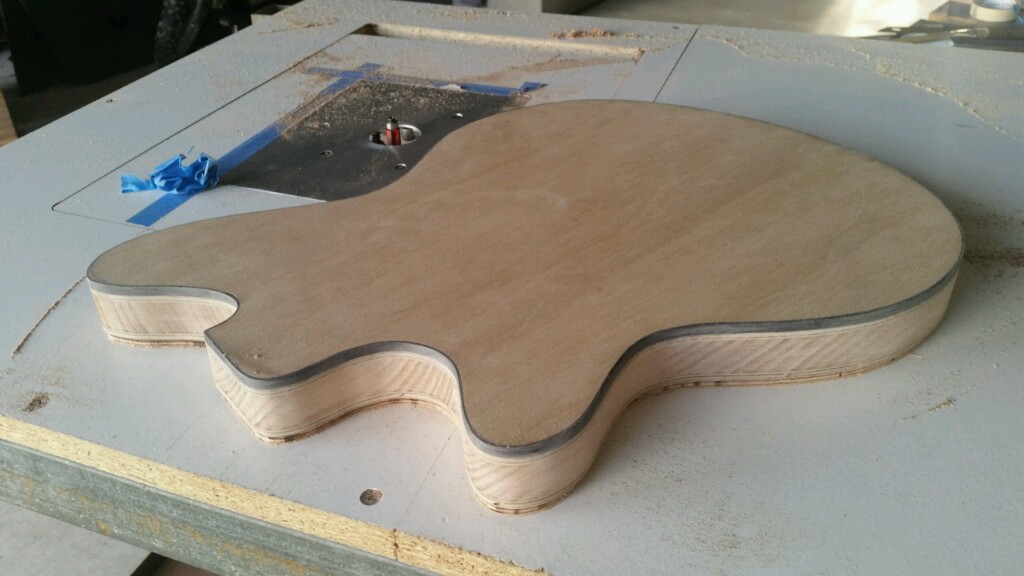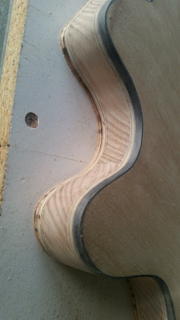 There has been some success and some failure since I was last on. The fingerboard levelling was a success and has been put aside until I get around to ordering a truss rod and frets to start on the neck build. The body with the multiple timbers in it (which I was loving) started to show some small hairline cracks in the glue joints, I assume they will only get worse with temp fluctuations so it looks like that one, unfortunately will end up as good looking barbeque fuel.(I certainly hope the steak turns out better HaHa). while I was waiting to start again I still have the original plywood topped body that I built to play with, and since I am still waiting for my white binding to turn up, I thought I would bind this body in black, as I might end up finishing this one and painting it white with black hardware. Anyhow at the very least it will give me some practise binding, so far I have done the back and cut the channel for the top binding, there is one small spot that needs filling but I will wait until I have done the front before I worry about it.Attachment 19071Attachment 19072ATTACH=CONFIG]19070[/ATTACH]