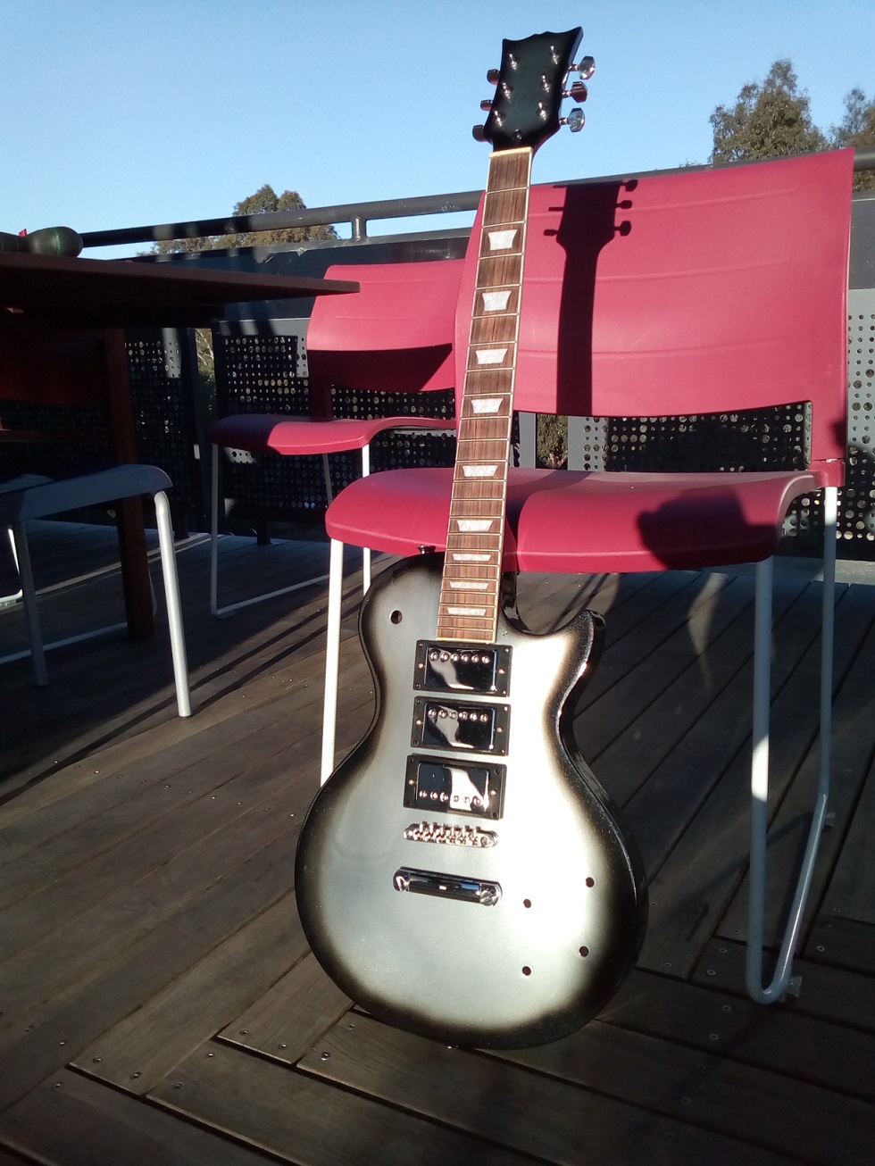 It is still to soft to finish but here's a shot whilst it is in the evening sun drying and one mockup with the pickups on.