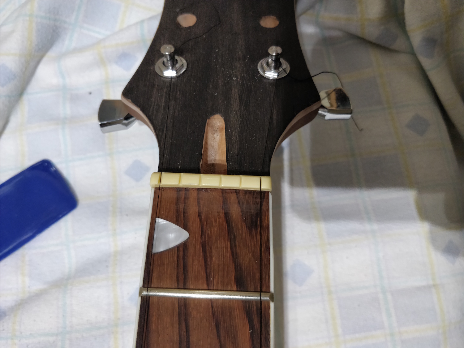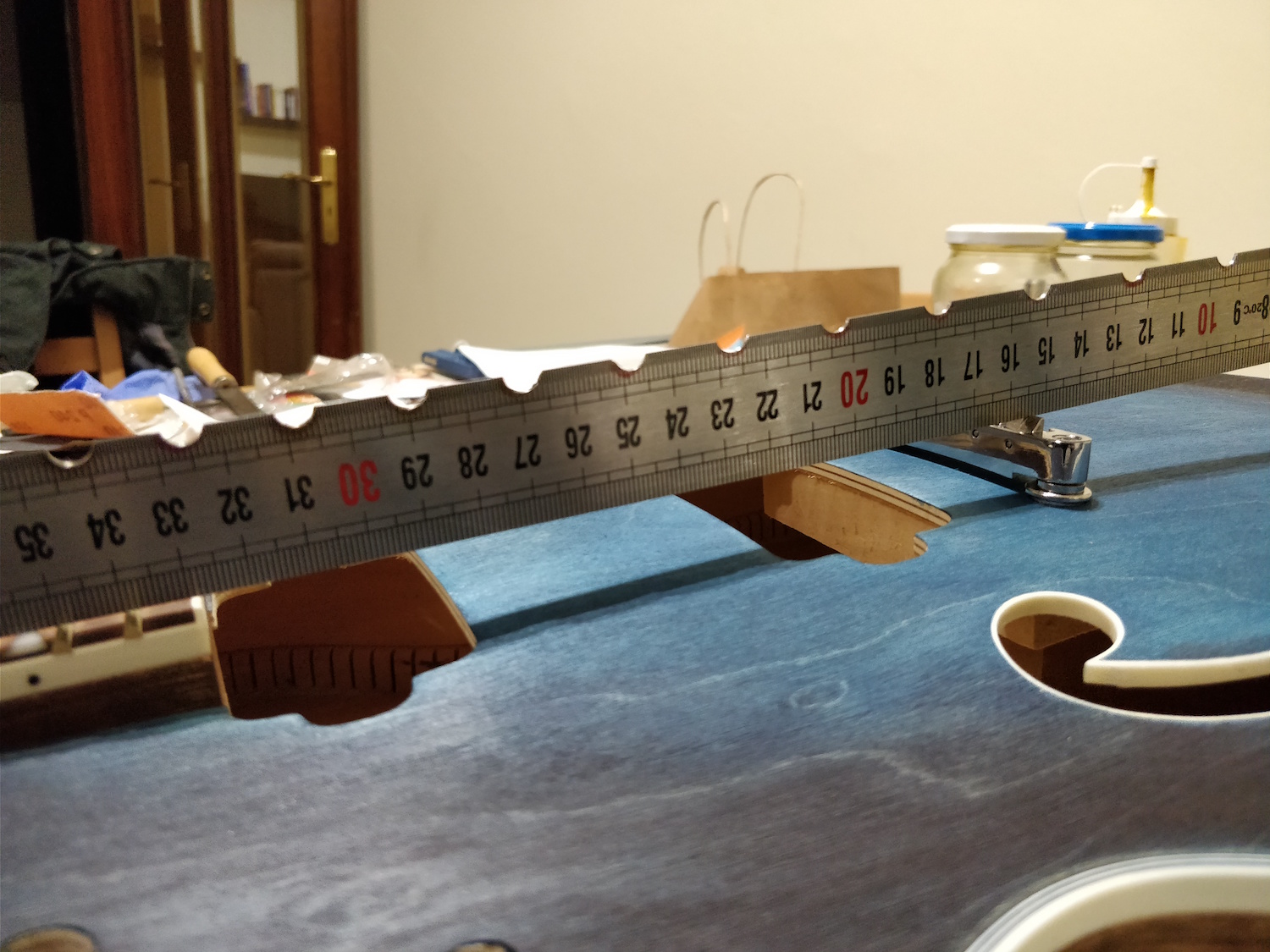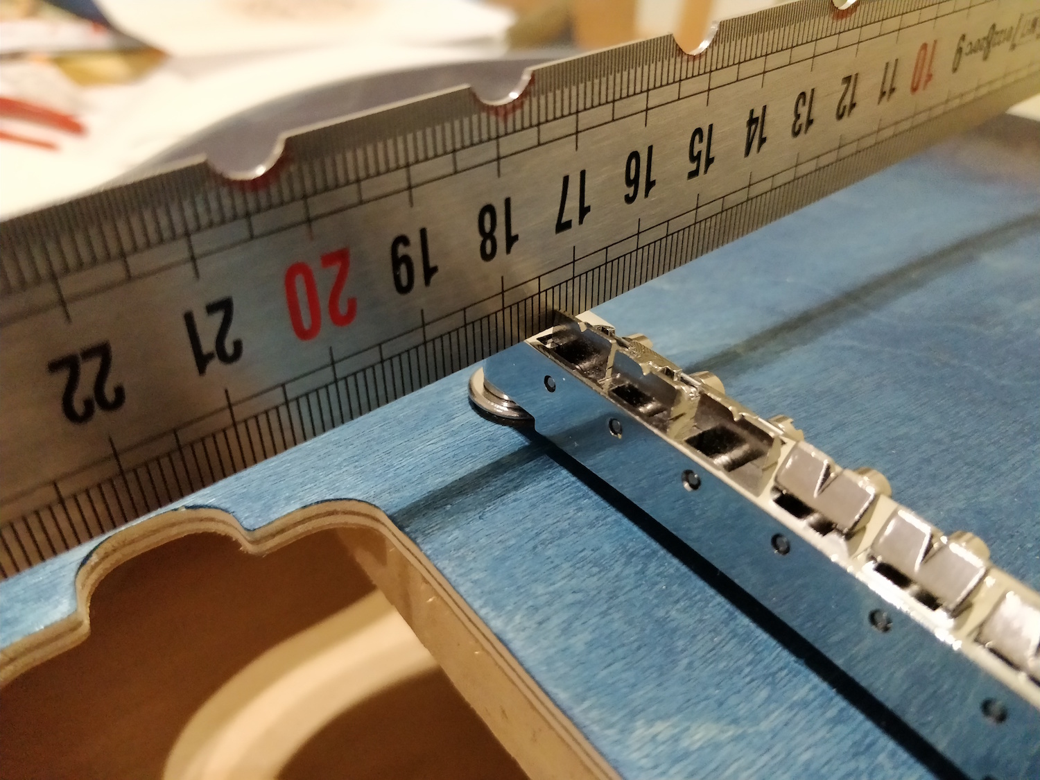 vh2580, when I tested the alignment of the neck, I attached 2 tuning machines and two yarns to them, and place them over the bridge with the necessary tension as if they were strings. What I found out was a high action, knowing that the bridge was on the lower position possible. I think this means that, even though with real strings it would be playable, I would never be able to lower the string height...