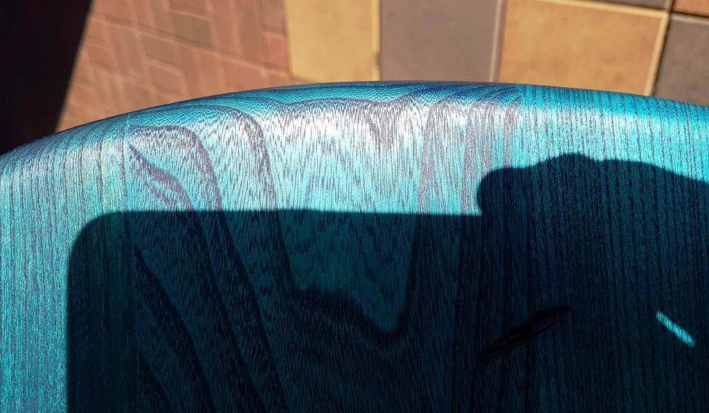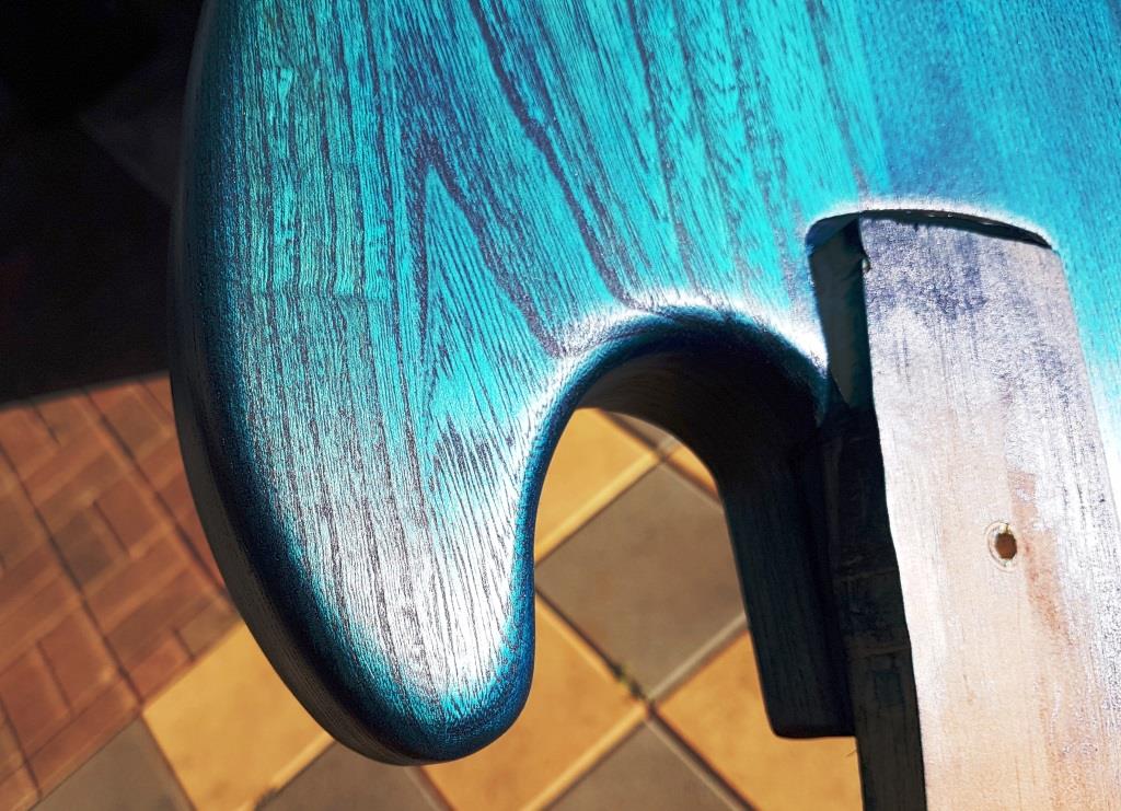So its a nitro based stain clear base 'Craftsman Pigment Stain' to which I added approx 1/2 blue and 1/2 green solvent based 'Ultratint'