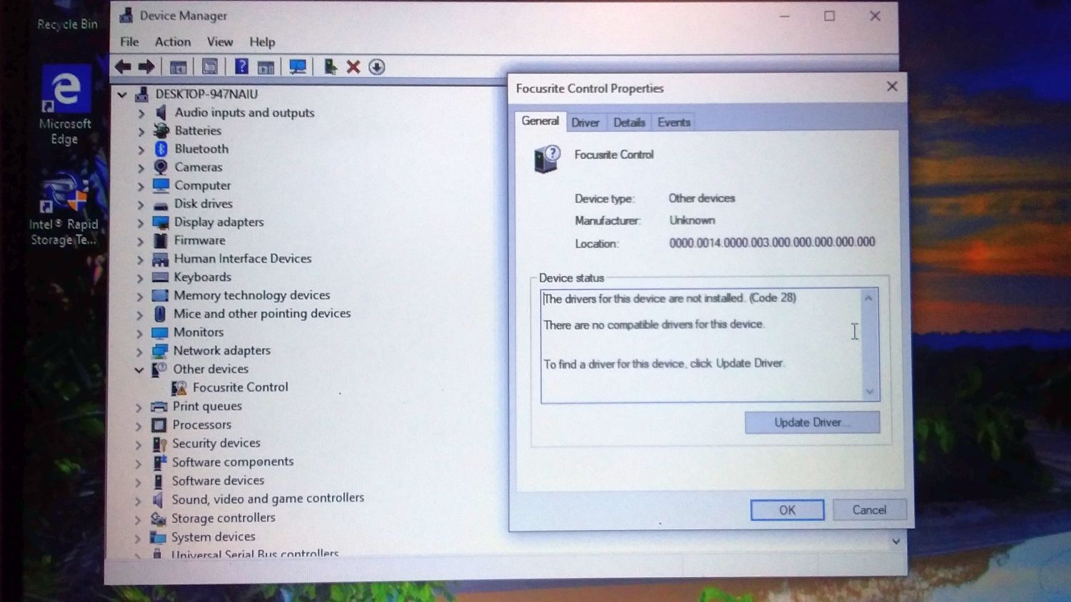Have you tried another interface, take the laptop into the place where you were/are doing the audio course and they a couple of theirs.