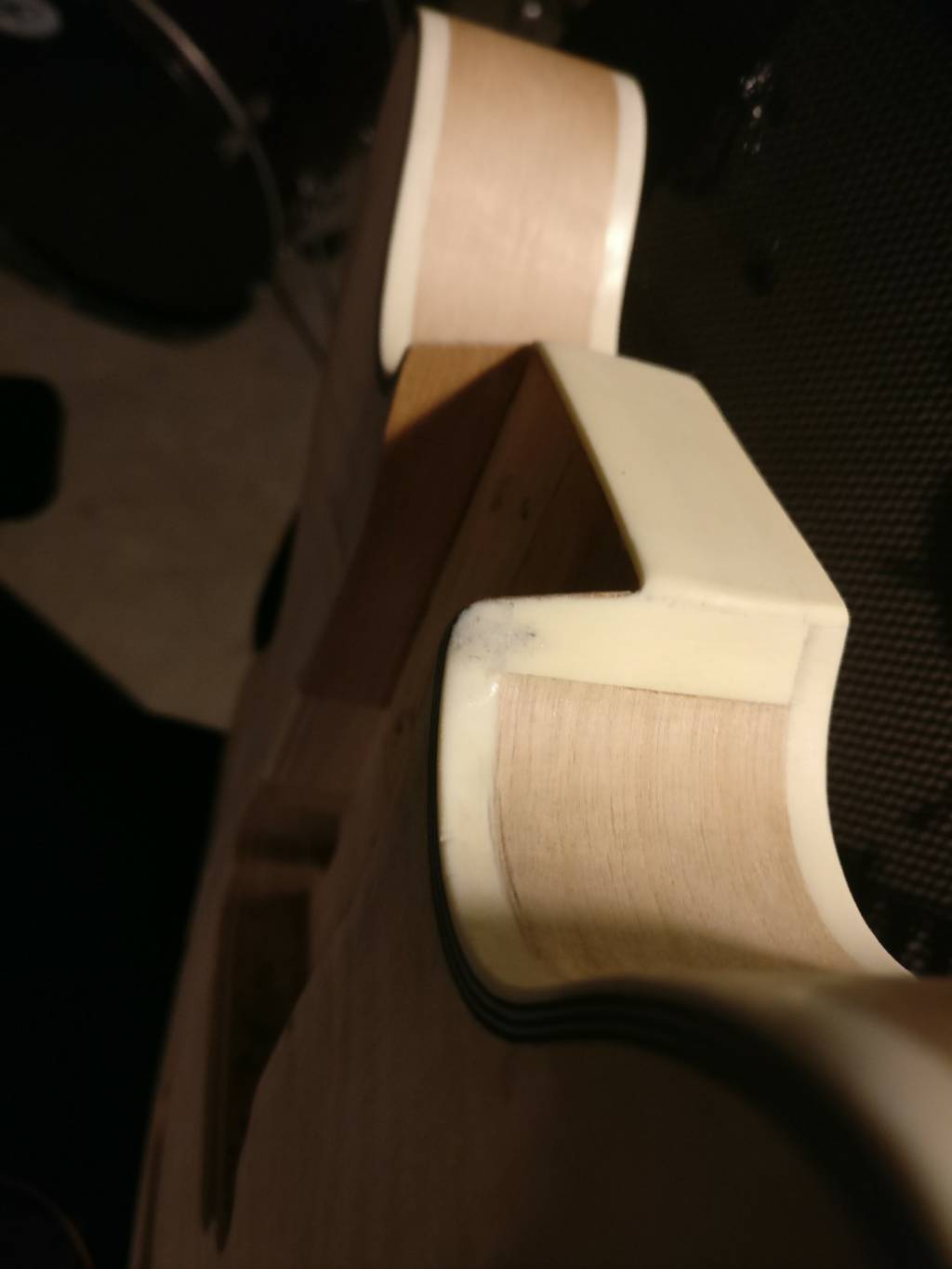 One semi related question...I sort of built the area up around where the neck bolts on with binding material... But there is one place where it got a little discolored. I am thinking that maybe I can find a shade of nail polish that's close... Any other ideas?