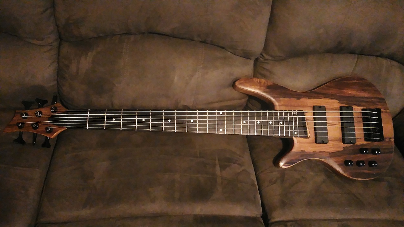 from the limited view of this bass it looks like a well finished kit. Love the natural headstock and the body appears to have some shine to it. Can’t tell if you decided to do a solid finish over the flame veneer, but the blonde colour suits the whole look and ties in the neck and headstock. It’s a shame there aren’t more photos as we would have really liked to have had a closer look.