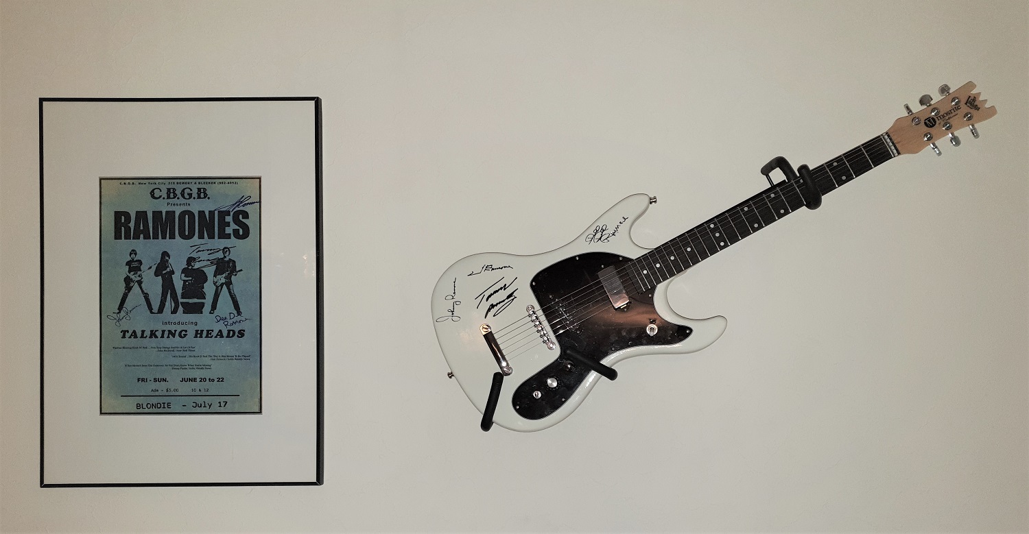 So, as I have an Alderite “Mosrite” coming from US, my original plan was to make a “wall hanger Ramones tribute” out of this axe, BUT, now it will live as THE Green Day guitar (with the signatures of the original Ramones members in the finish).