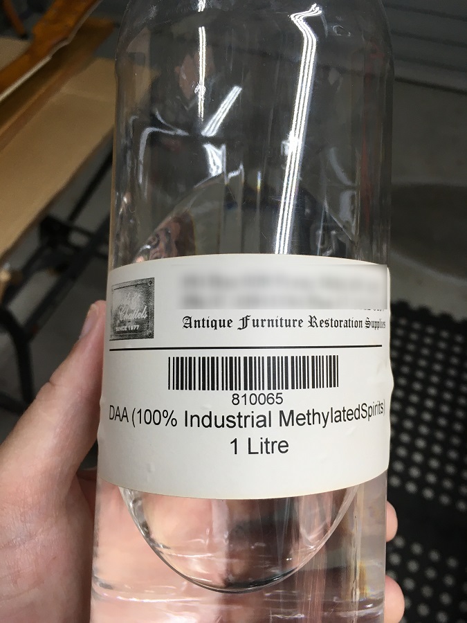 The process was to scrape off all the loose bits with a scalpel blade, then sand with fairy fingers. I applied a stain to any uncovered wood and then used a cotton bud to dab on some RCP. It was then back with the fairy fingers to sand 1500 wnd as smooth as I dare. I did a couple of rounds with the RCP and then polished.