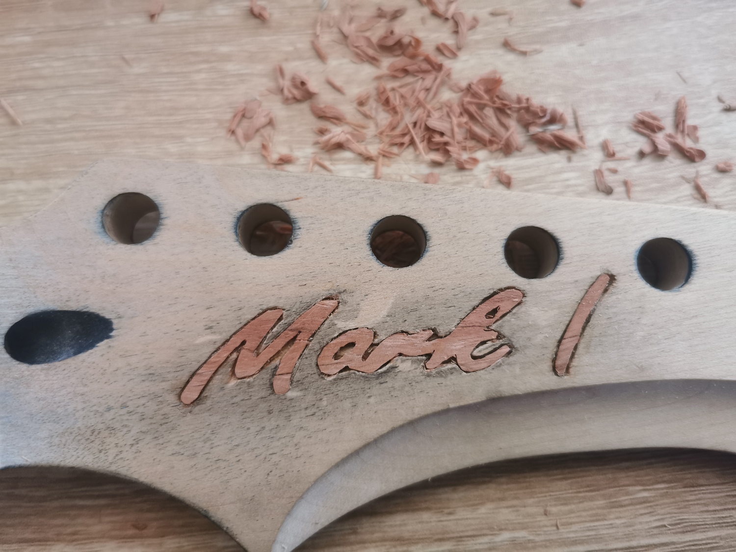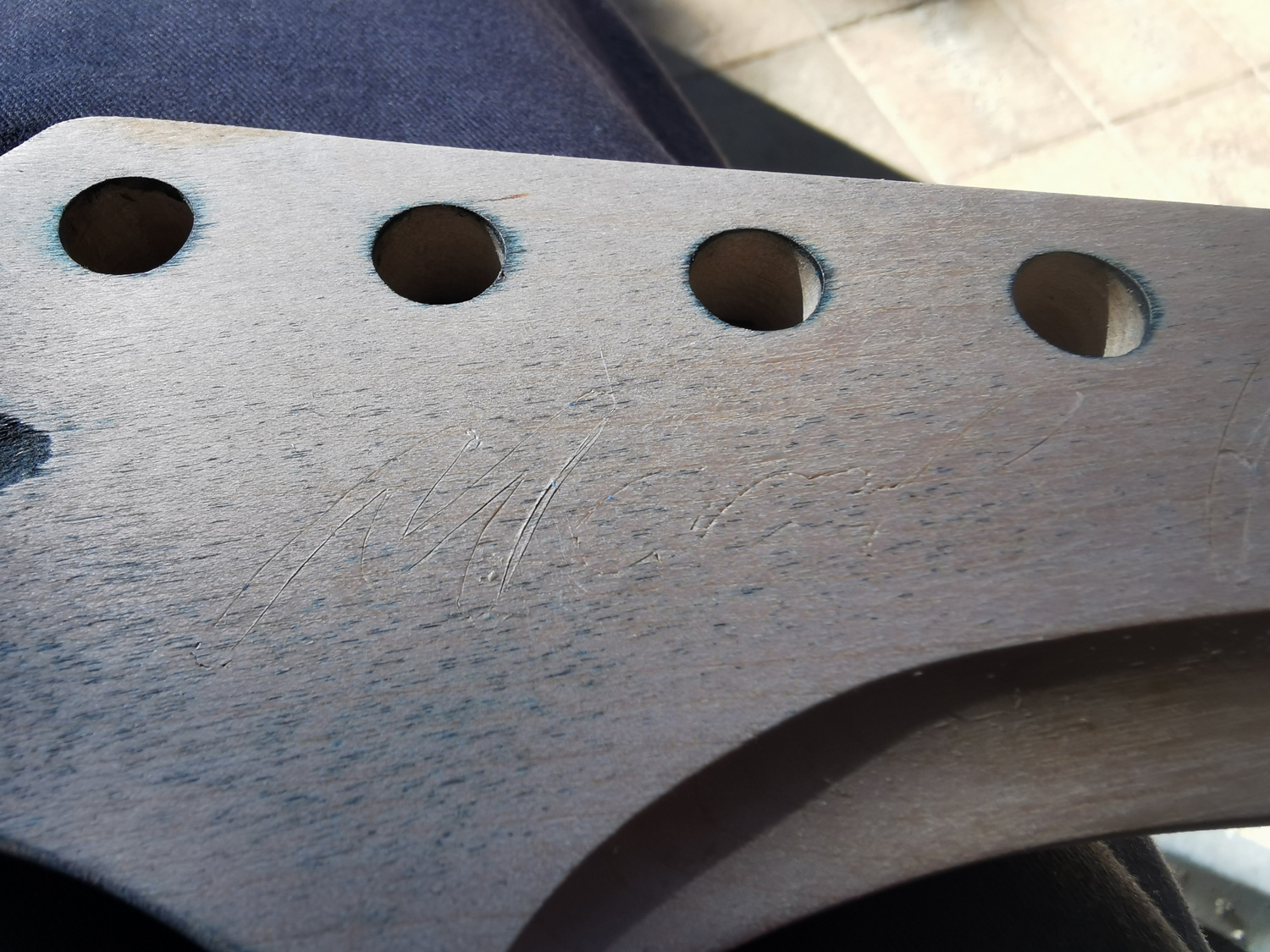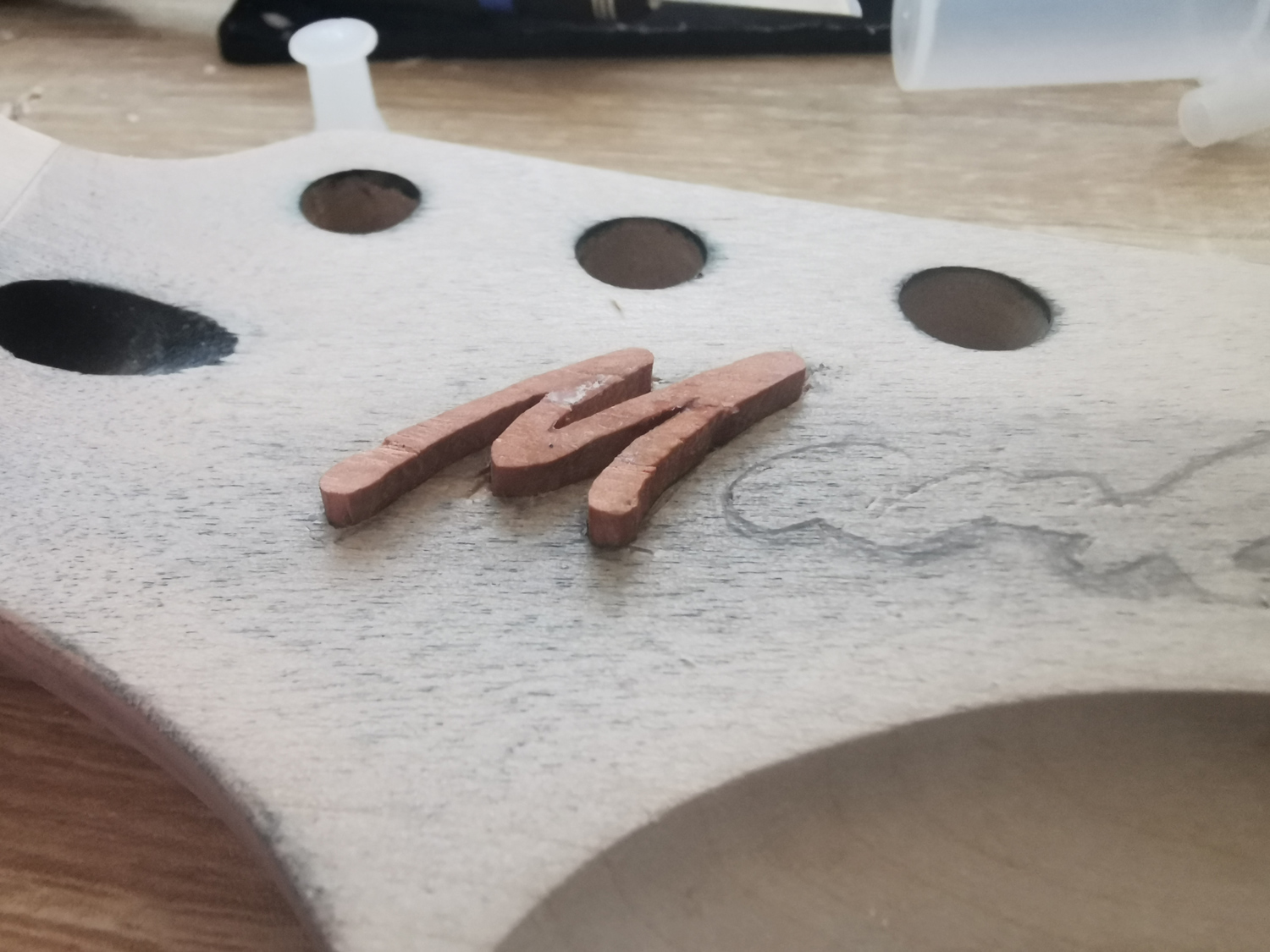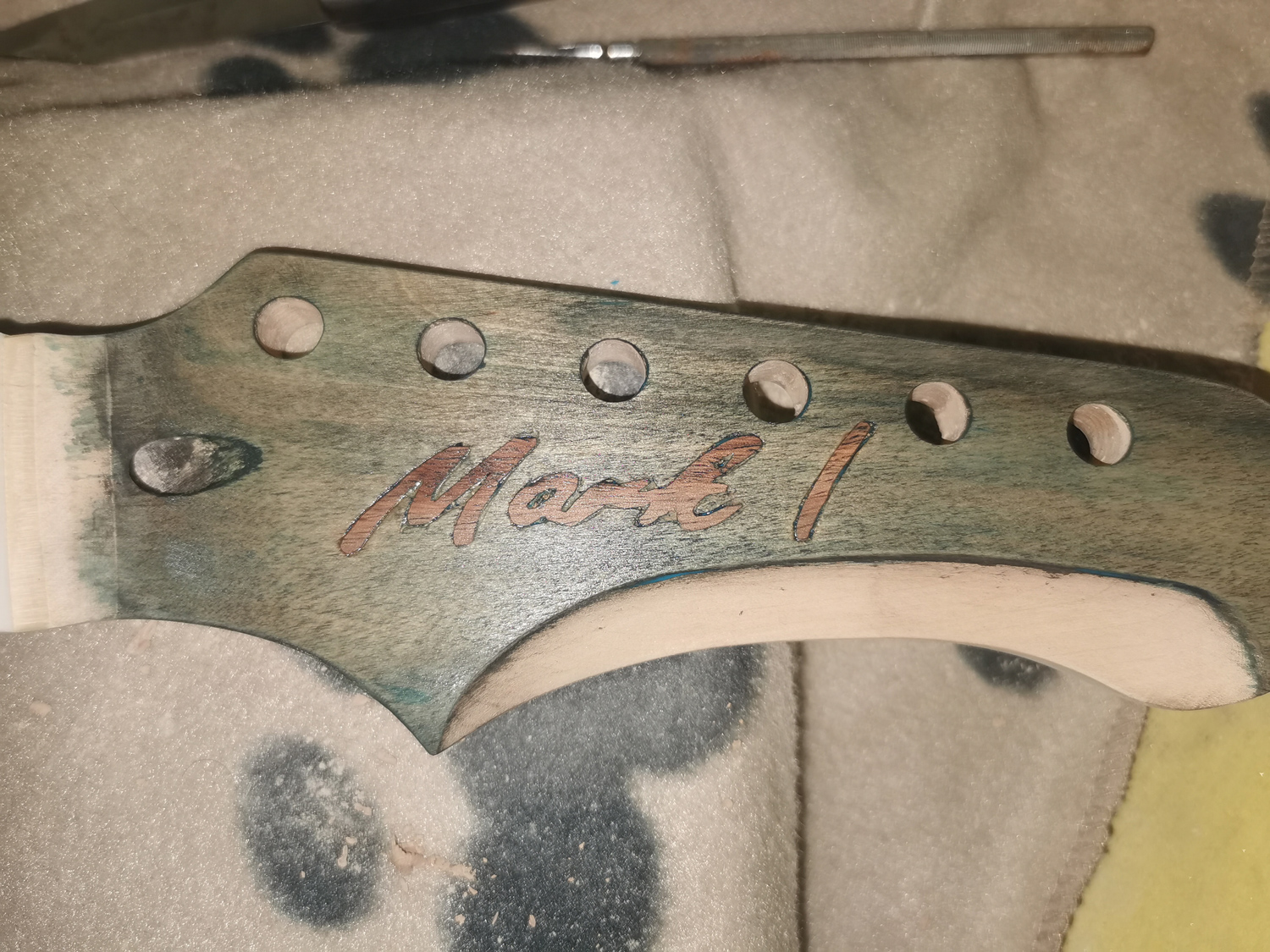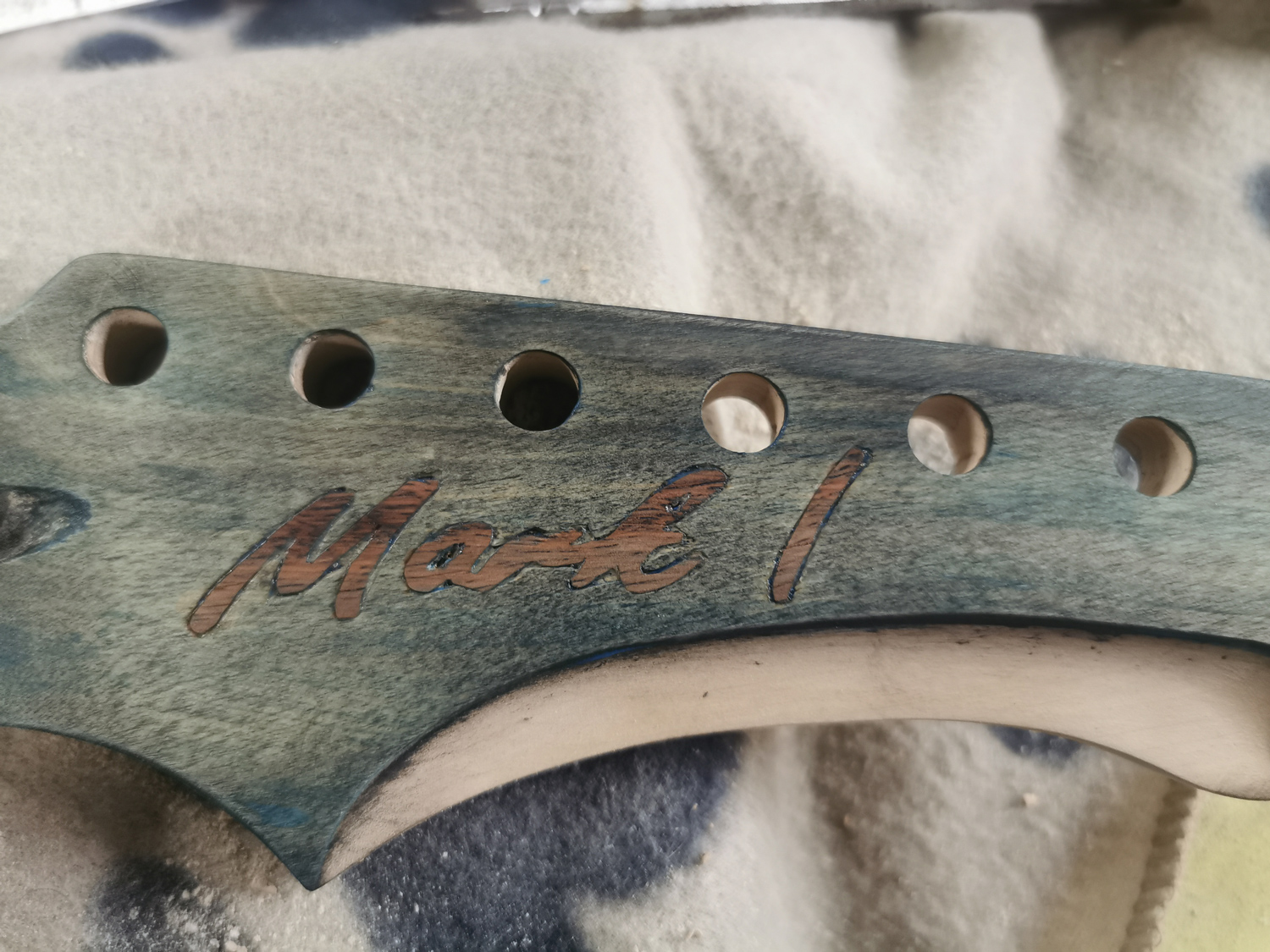 So, I'm down to two options. The first thing I'll try is a brass wire outline for the lettering. If that doesn't work I might veneer the headstock.