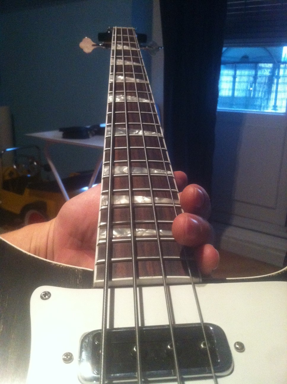 Hi guys, new years update...last night i worked a lot (from 11pm to 2a.m.) giving some touches to the headstock after i returned from my inlaws residence (up to 500 km) i couldn't resist myself reshaping the new headstock, cut it and sand down with 100 grain. All by hand, only dremel was used a little bit with the inside of the up horn. Beechwood its a very hard one for coping saws at this width but its ok.