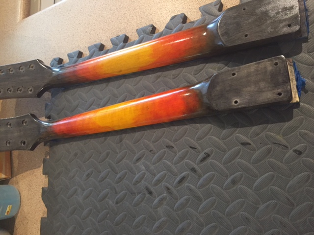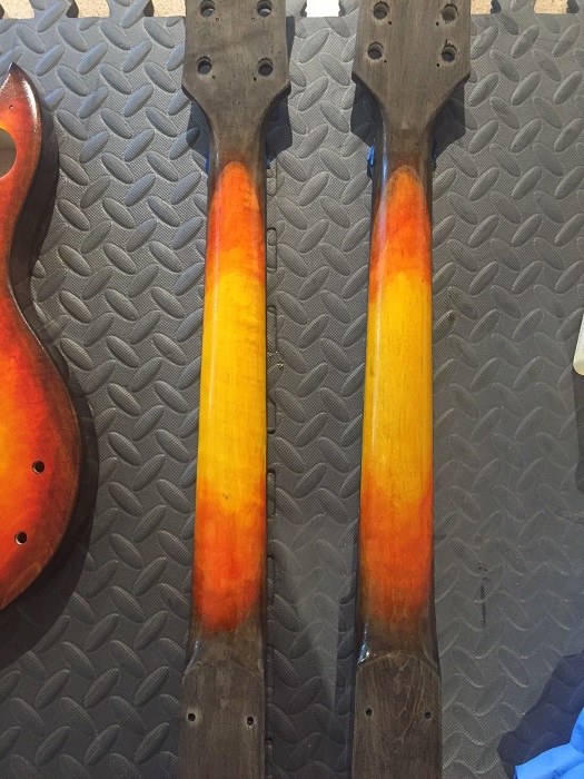 Originally I was going to make it more orange but the Coolangatta Gold looks so good. maple necks look like they are on fire.....ha ha might call it a fire burst!