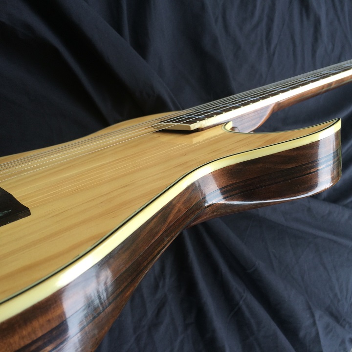 The neck and the headstock has been stained a Walnut colour so I could not apply my usual black printed decal on the headstock so you can see it here applied to the body of the guitar.