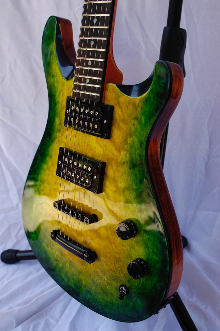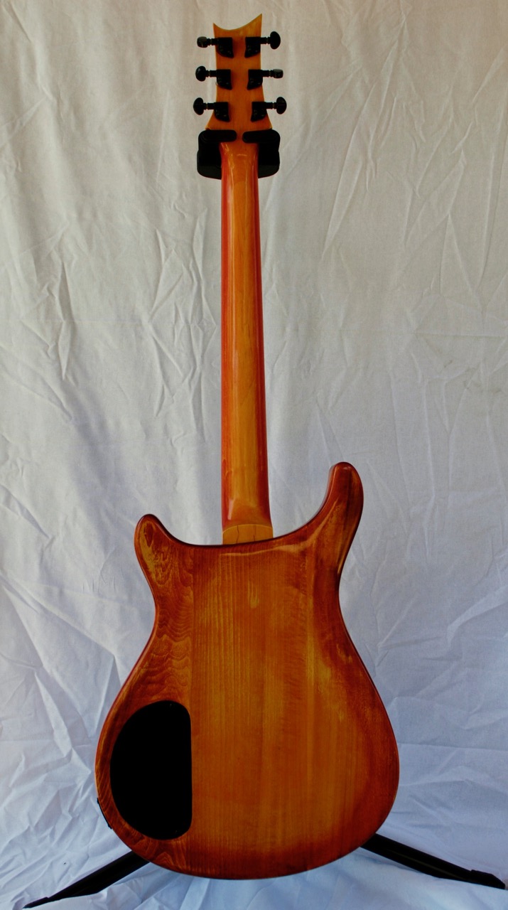 - PRS shape headstock with quilted maple veneer