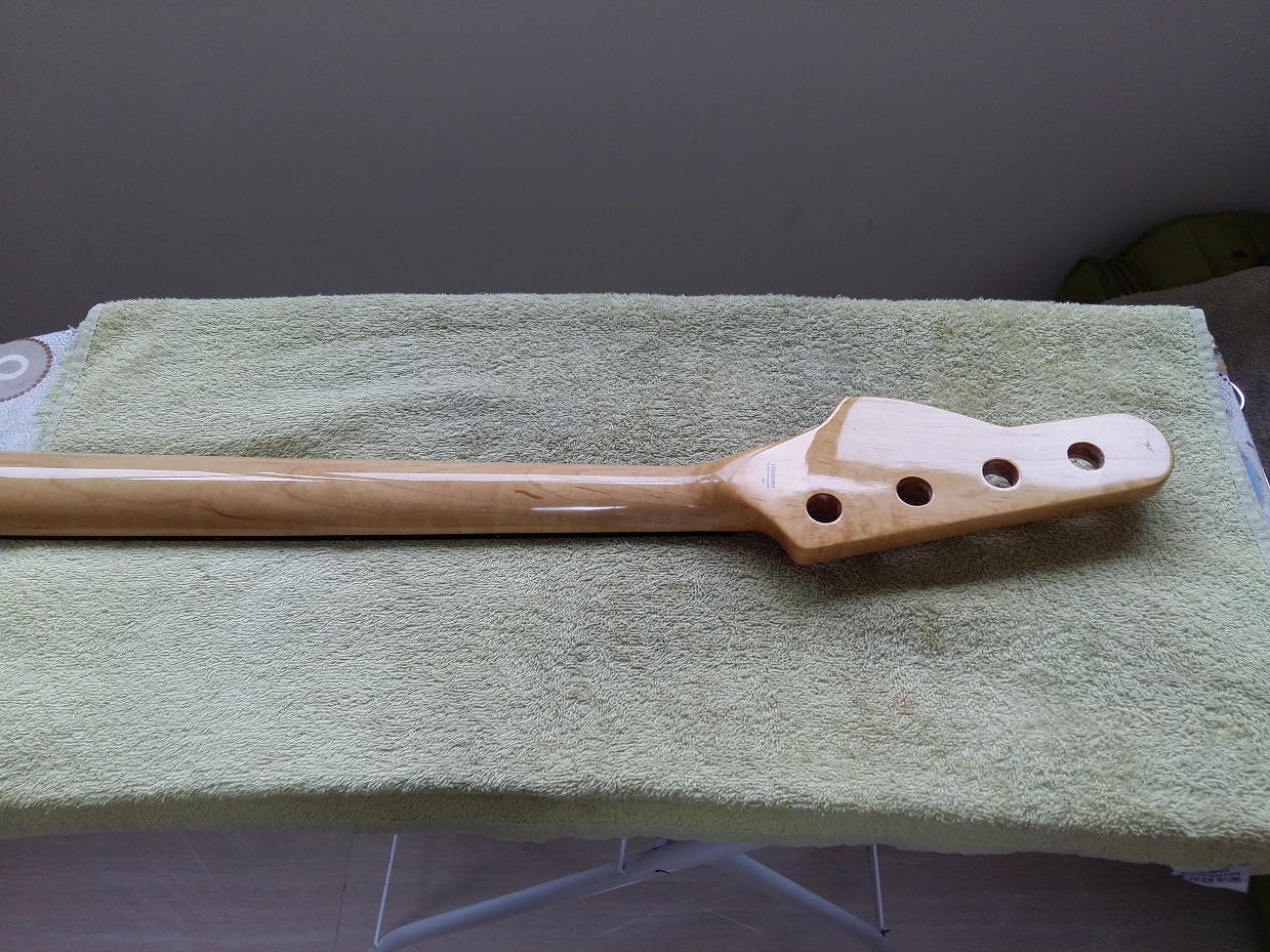 it has been long and winding road. over this month, just kept repeating work on the neck and body sanding, coating clear, waiting for drying out, wet sand over and over again... and it was painful experience when i found something wrong on coating, "Burn through"... not once, but several times.