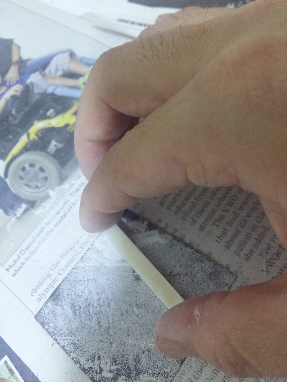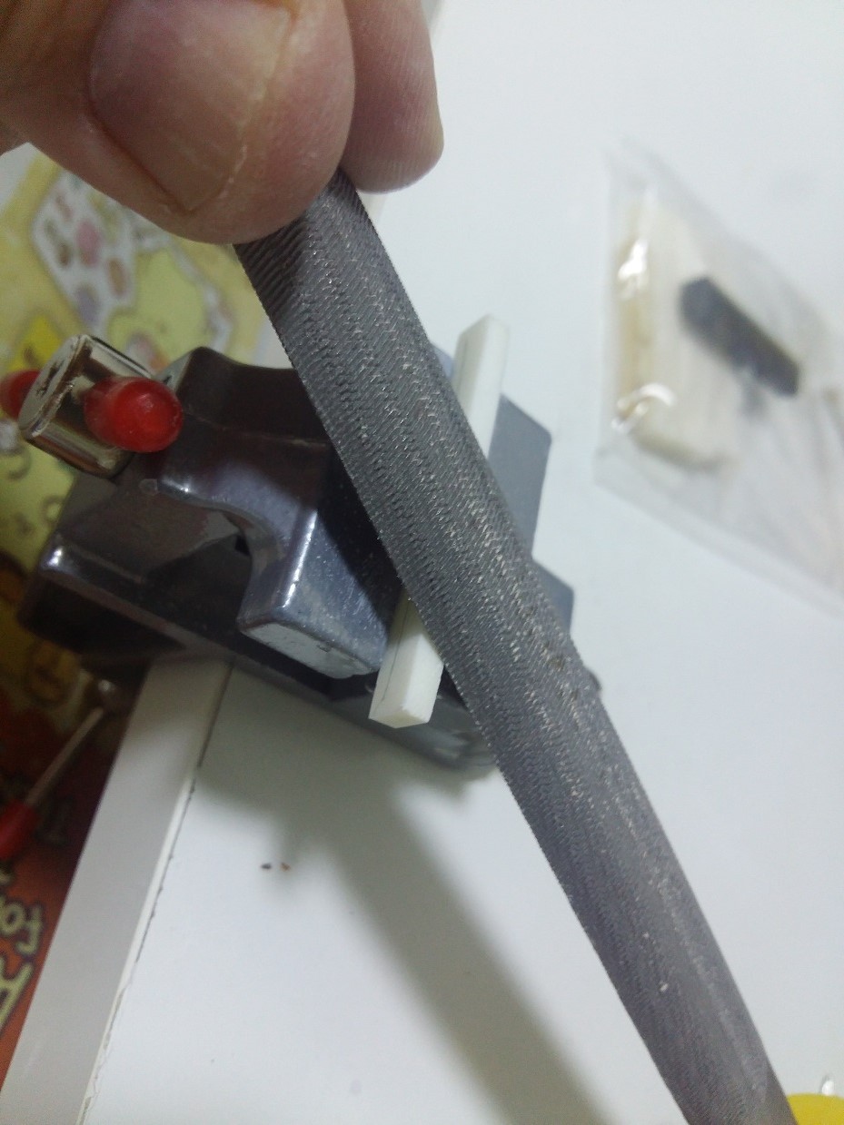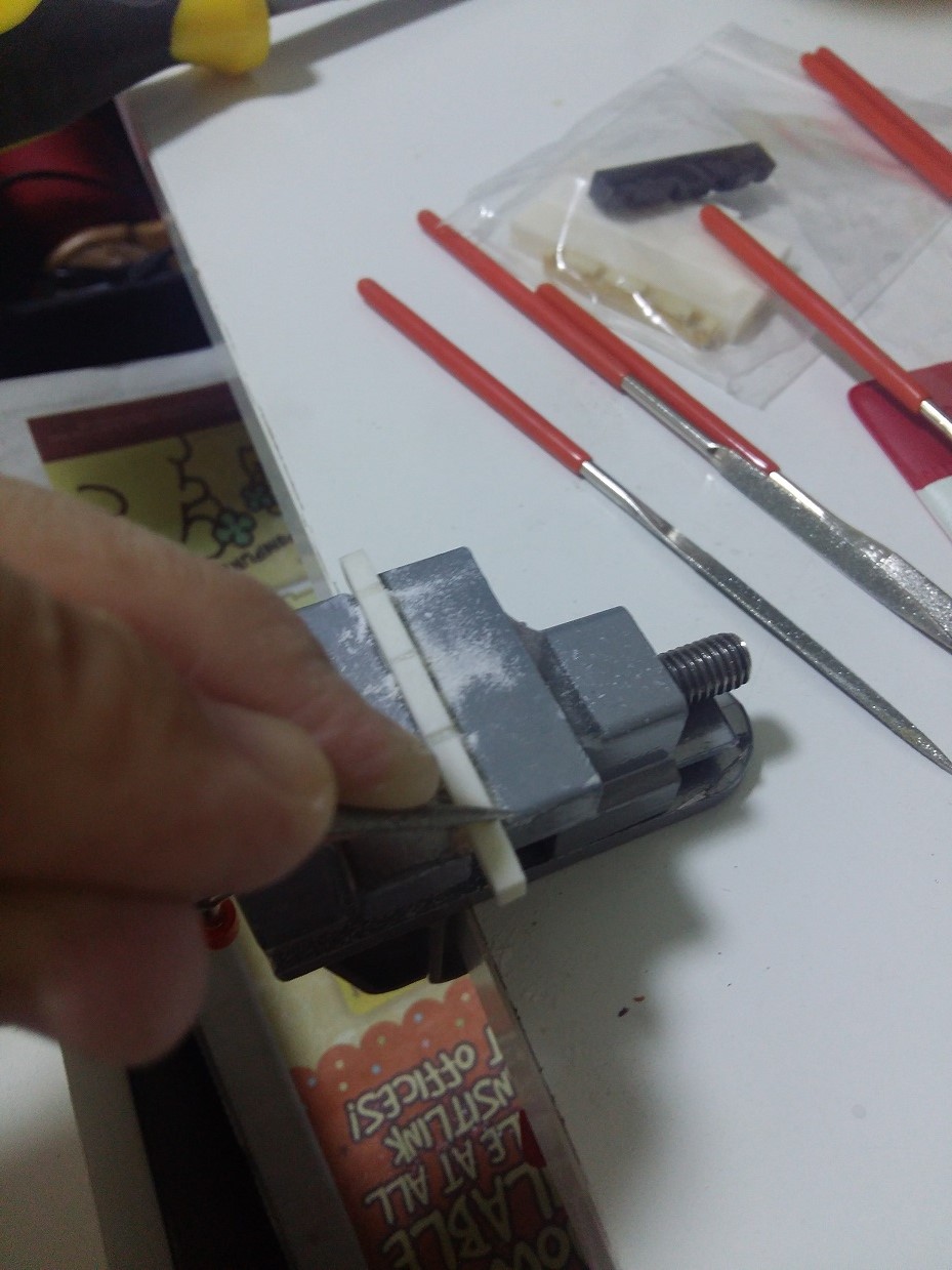 again, sanding sanding sanding...while refering to instruction, i imitated the stocked nuts attached to the kit.