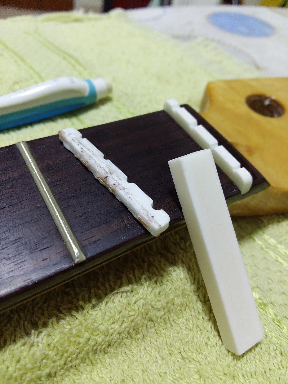 And I have blank bone nut block, so i tried to make one, following StewMac instruction.