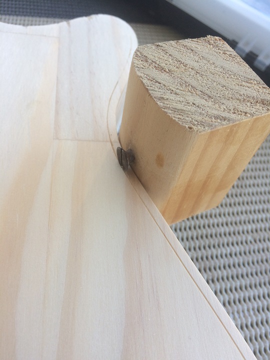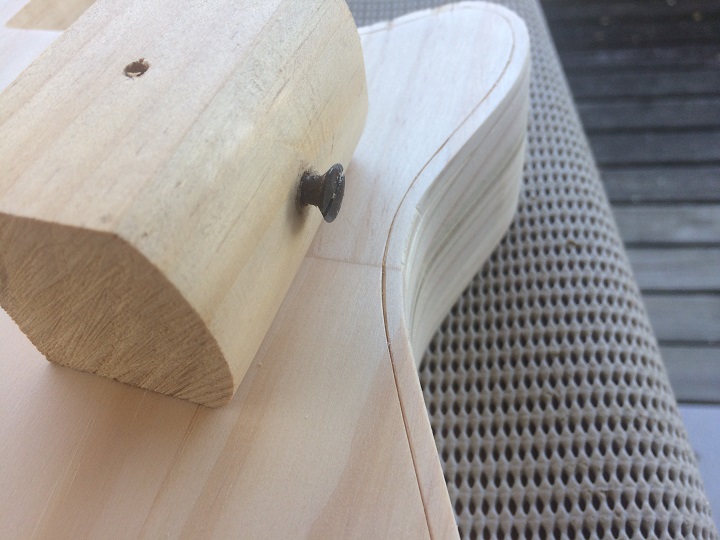 But it was then that I realised that as the body is much thicker than a standard electric guitar the neck screws I had bought were way to short. I would have to leave the ferrules deeply recessed. Then thought that I would bevel the area behind the neck pocket to give me better access to the higher frets. Then I thought, what the heck, why don’t I just try and shape it a bit. So I did.