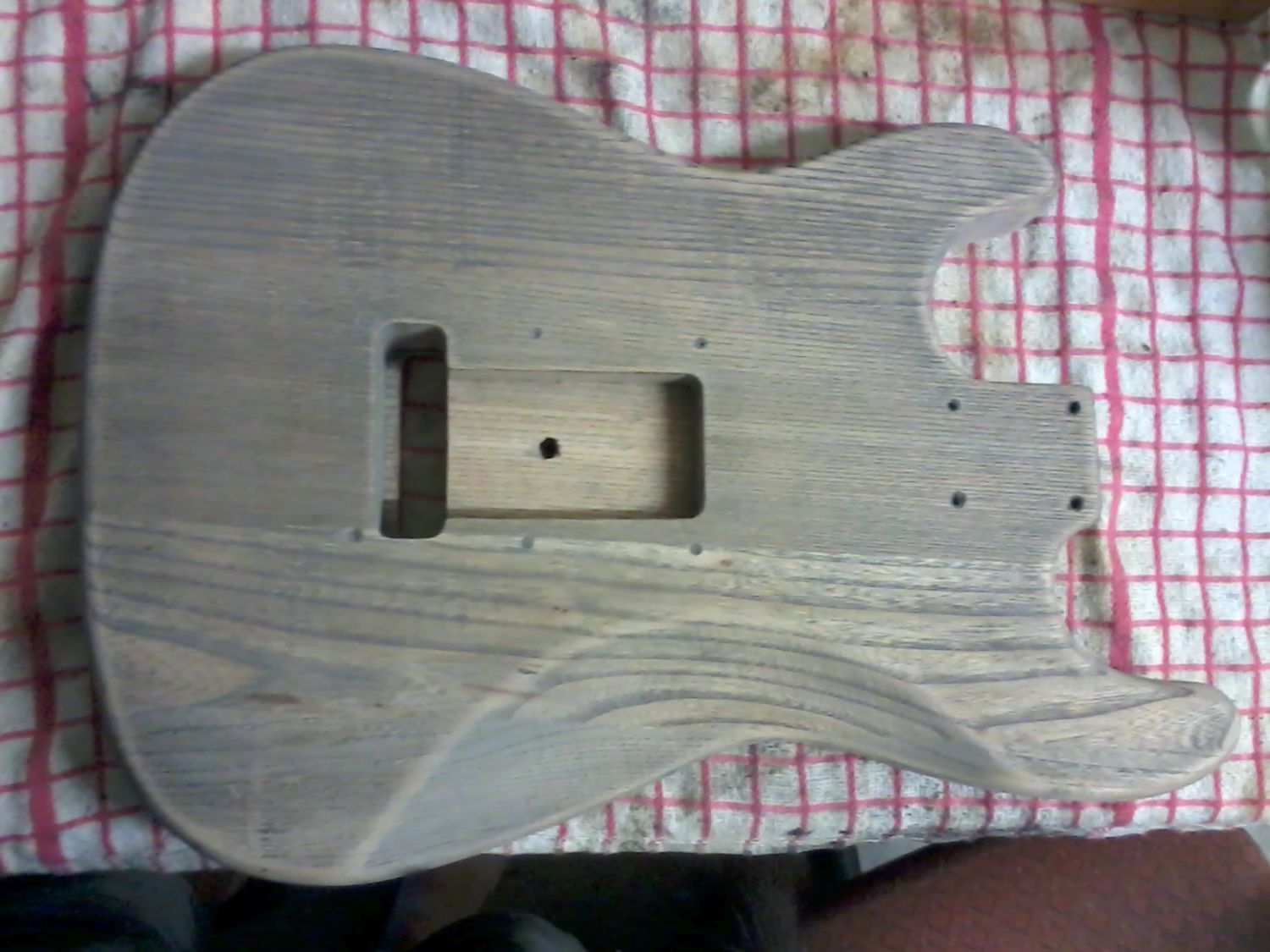 That is looking superb Doc! I really love the grain figuring along the upper bout, how it sweeps forward across the top of the guitar. I'm curios to see how it comes up with curing and re-application of stain.
