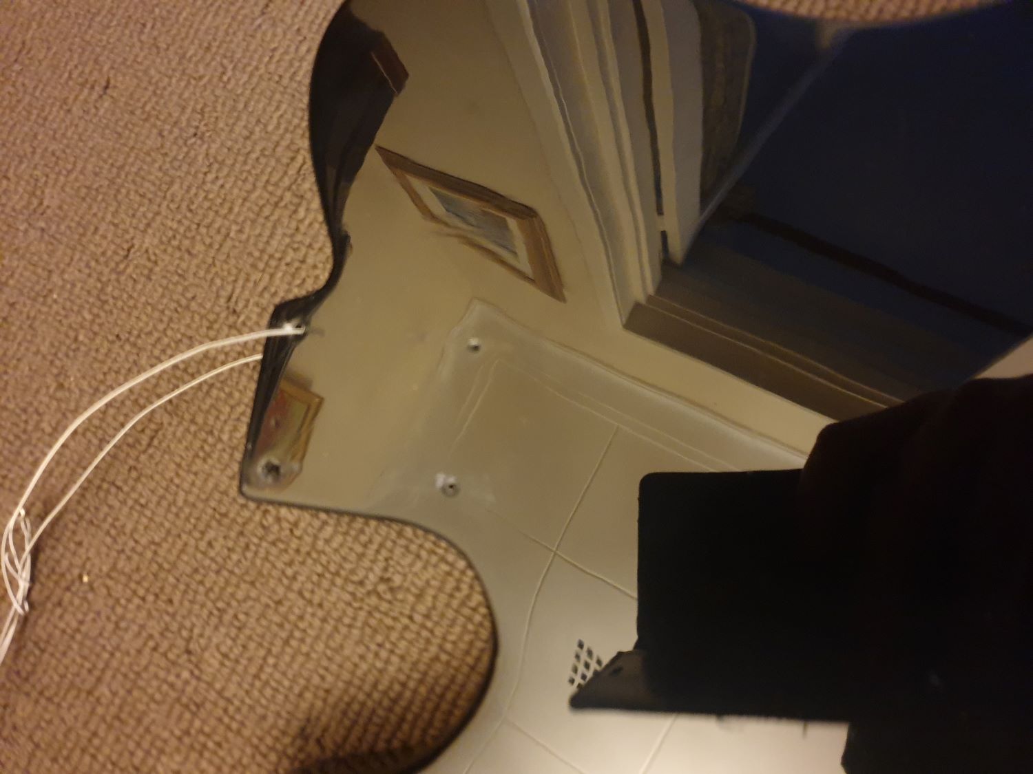 And checked against the neck plate. The fine hairline crack which wa just extending beyond the neck plate is no longer visible (luckily - that bit of the glue stained black with the sharpie).