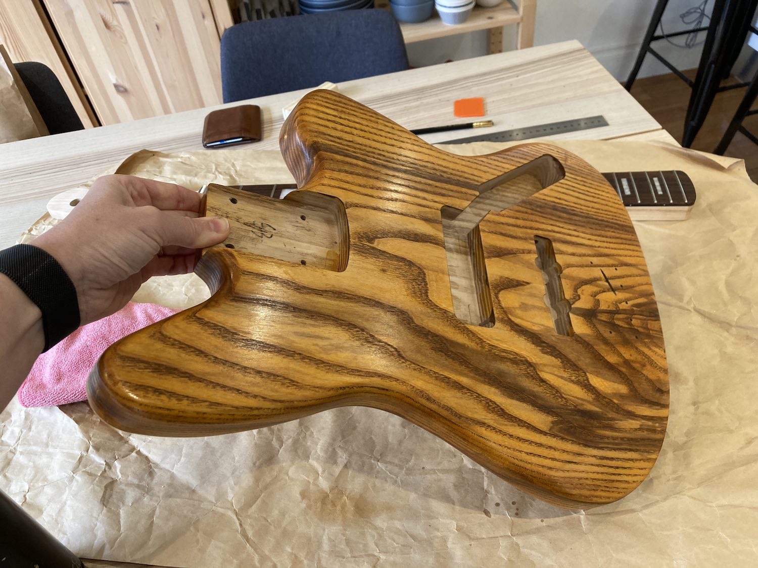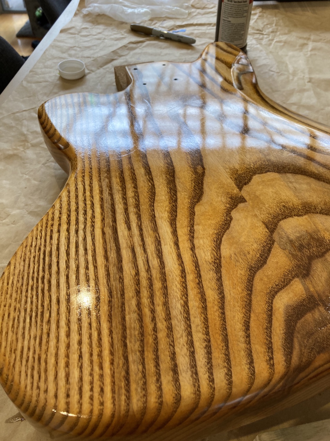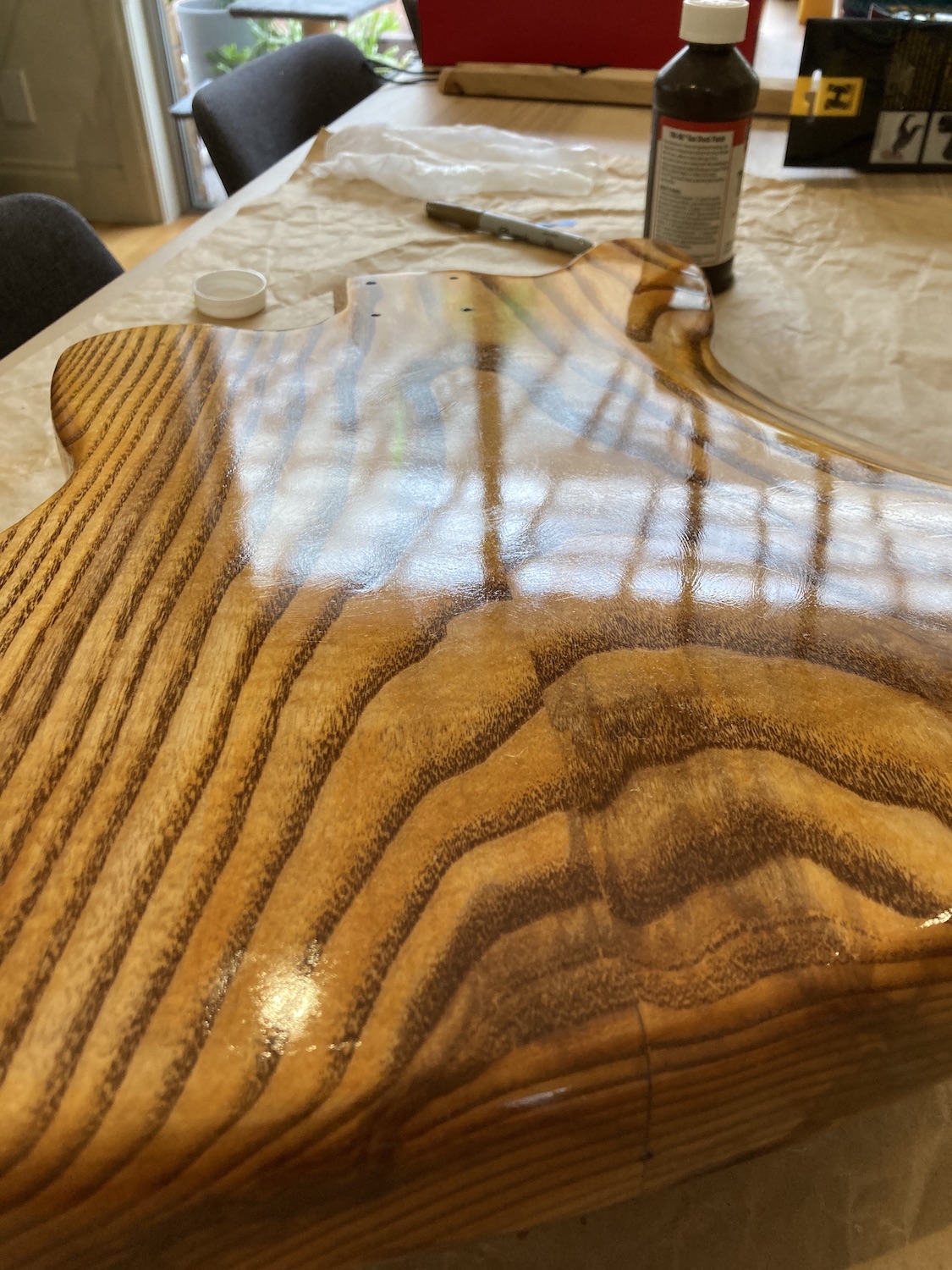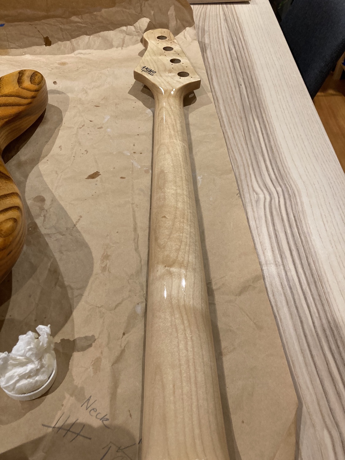 I've felt some light at the end of the tunnel this week as the Tru-Oil has really been building up and getting a good gloss. Now that I see it I think I'm going to go for a gloss rather than a satin finish. You can still see the grain really well and I'm just enjoying the process of applying the TO.