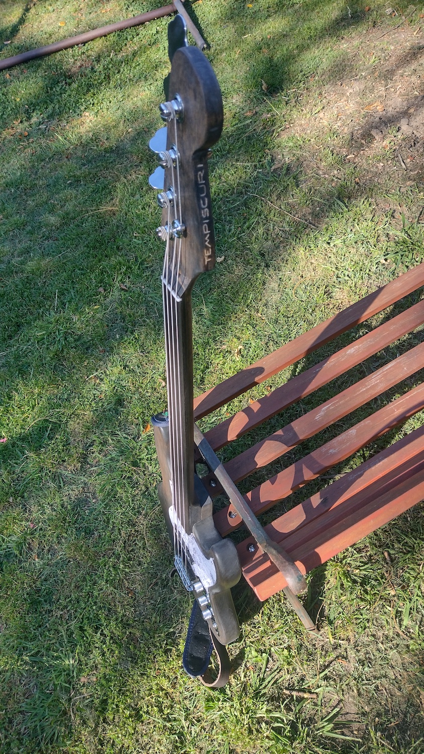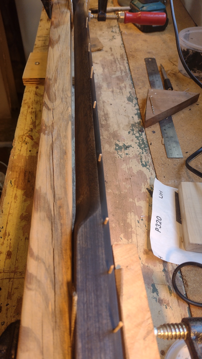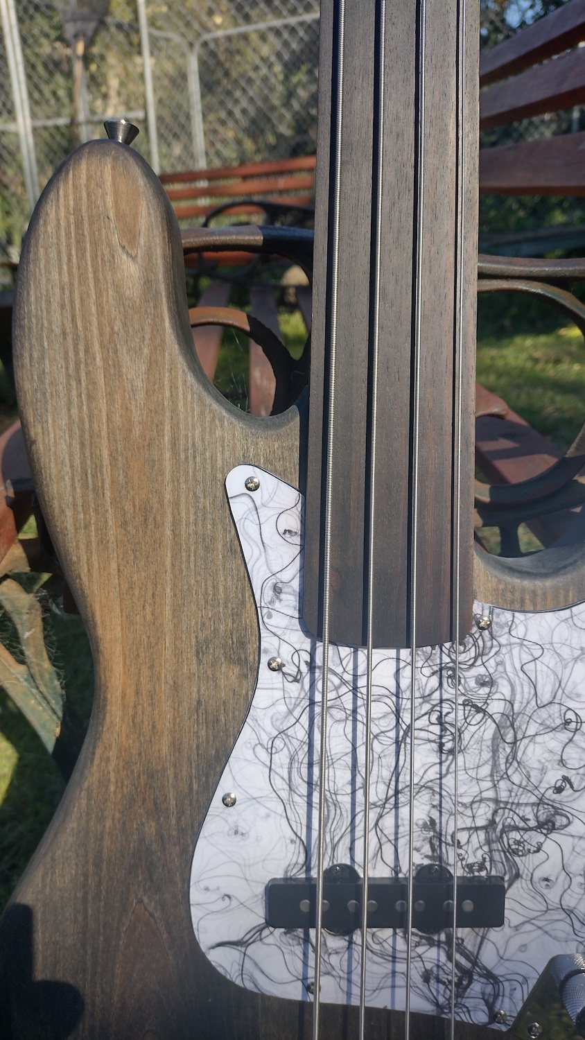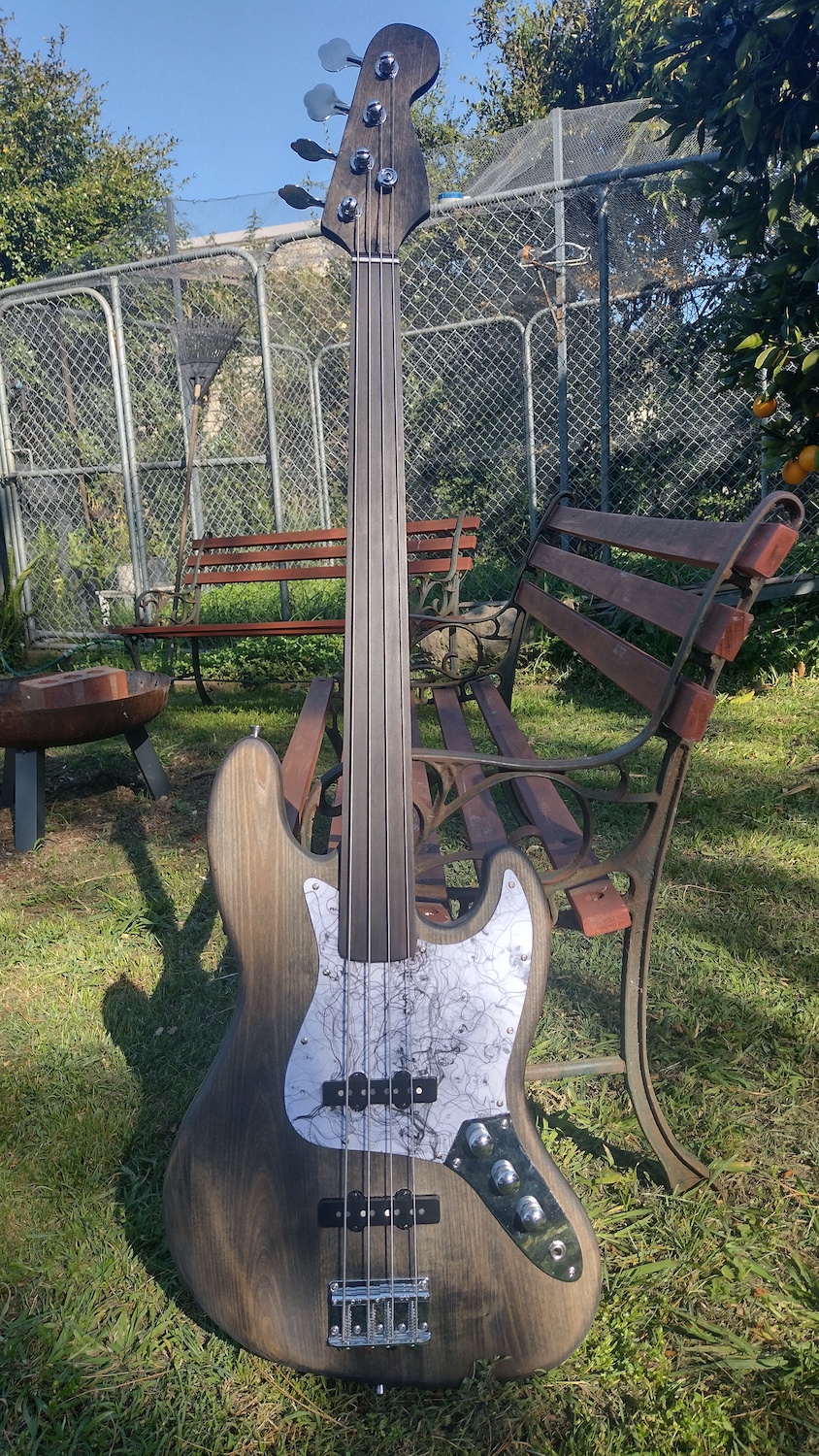 I just read through your build diary, and found the dot-on-fretless discussion really interesting. I am converting one of my basses (very slowly) to fretless. It's different than yours, because I pulled the frets on a rosewood board. I then filled the frets with a light colored hardwood veneer. I didn't fill the dots, but one of the advantages of filling the slots with veneer is that you can see where the frets were. Different than yours, but it got me thinking...
