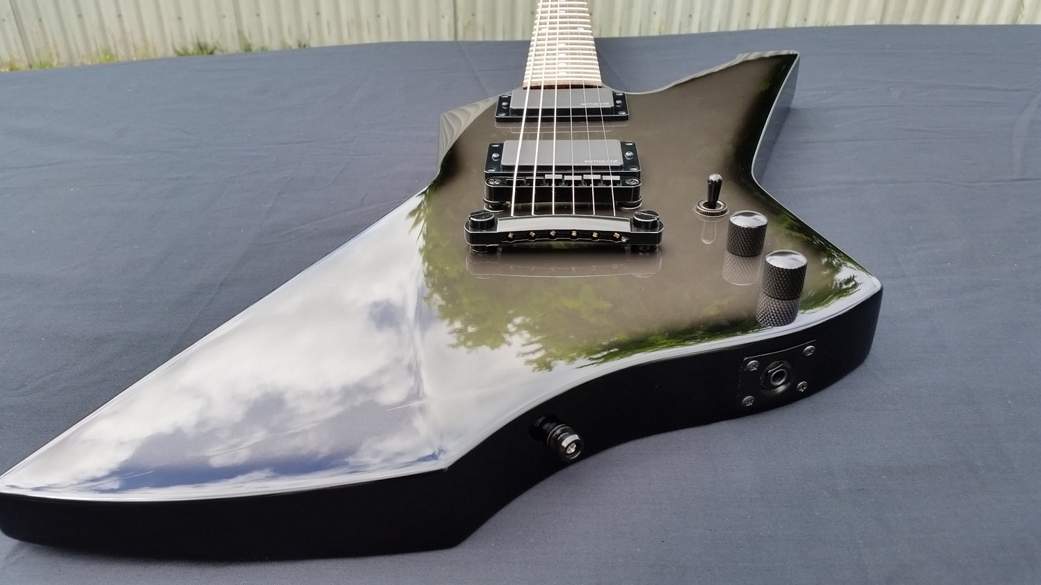 awesome shredder Grant, love the shape mods and the burst and colours you chose. Bet those EMGs sound good. As Pest says we will need a few chords to hear how she sounds