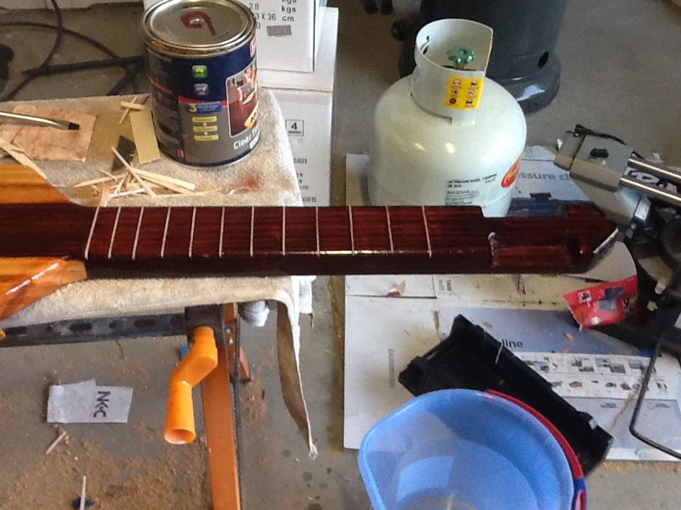 Hey Bruce I have to thank you mate, you have inspired me to build a similar lap steel but mine will be a baritone scale. I am hoping it will sound like a baritone guitar with heavier strings and a lower tune. Just want to try it out. I have glued the neck through piece together and after some sanding will glue the wings on and route the tuner post cavities. I'll post some pics soon !