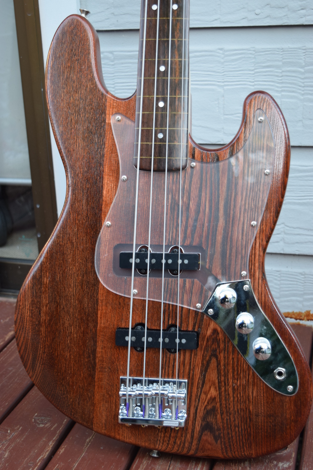Ponch you really made the most out of the lovely ash grain and some very tasty upgrades this is a stunner Jazzy. Love the clear frosted pickguard and bonus point for the fretless conversion.