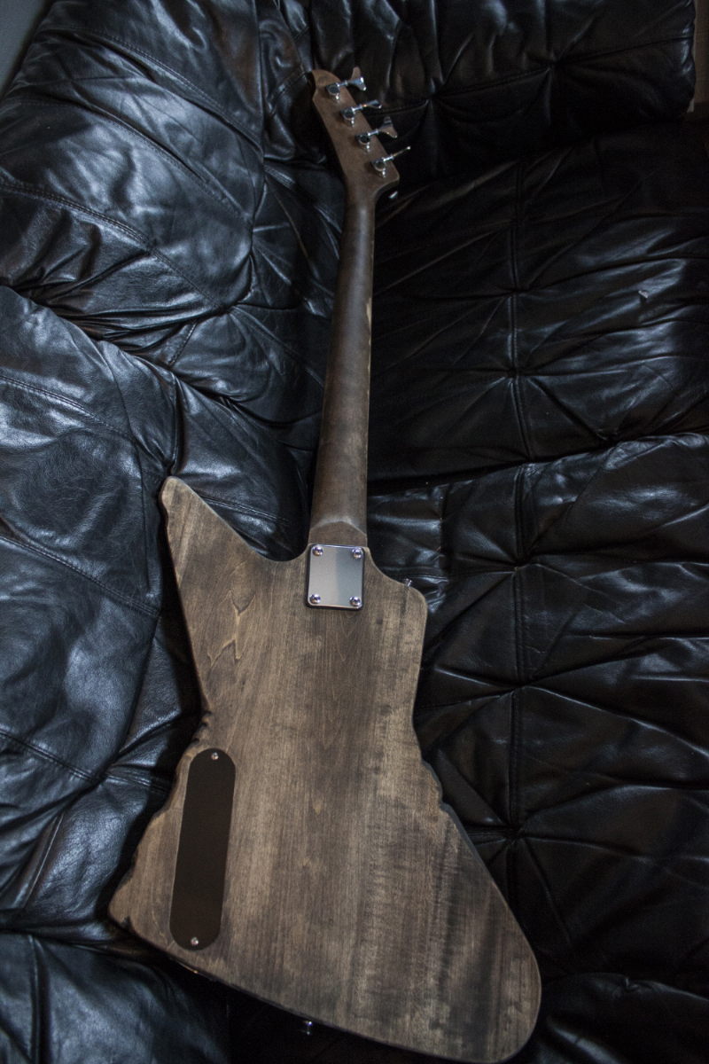 Hello. Here is my Explorer bass that I recently finished. I'm a wood carver who just recently started experimenting with guitar building. This is the 2nd kit guitar I made. I tend to have an all or nothing approach to everything I do. It might be stomach-turning to traditionalists, but oh well. Take care.