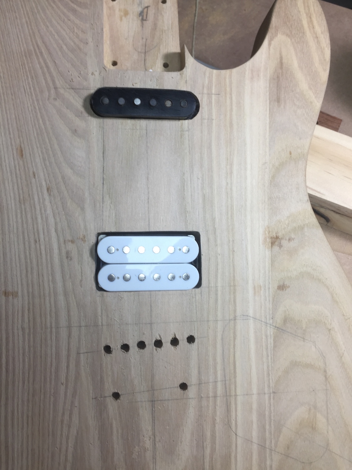 Looking good to me. What's the plan for the Strat pickup mounting? Fix a metal or plastic plate in the cavity with a couple of mounting holes drilled in it?