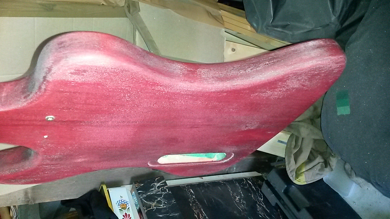 I sanded it, take oof a little bit more of the red color on the sides, whitch were not really looking good.