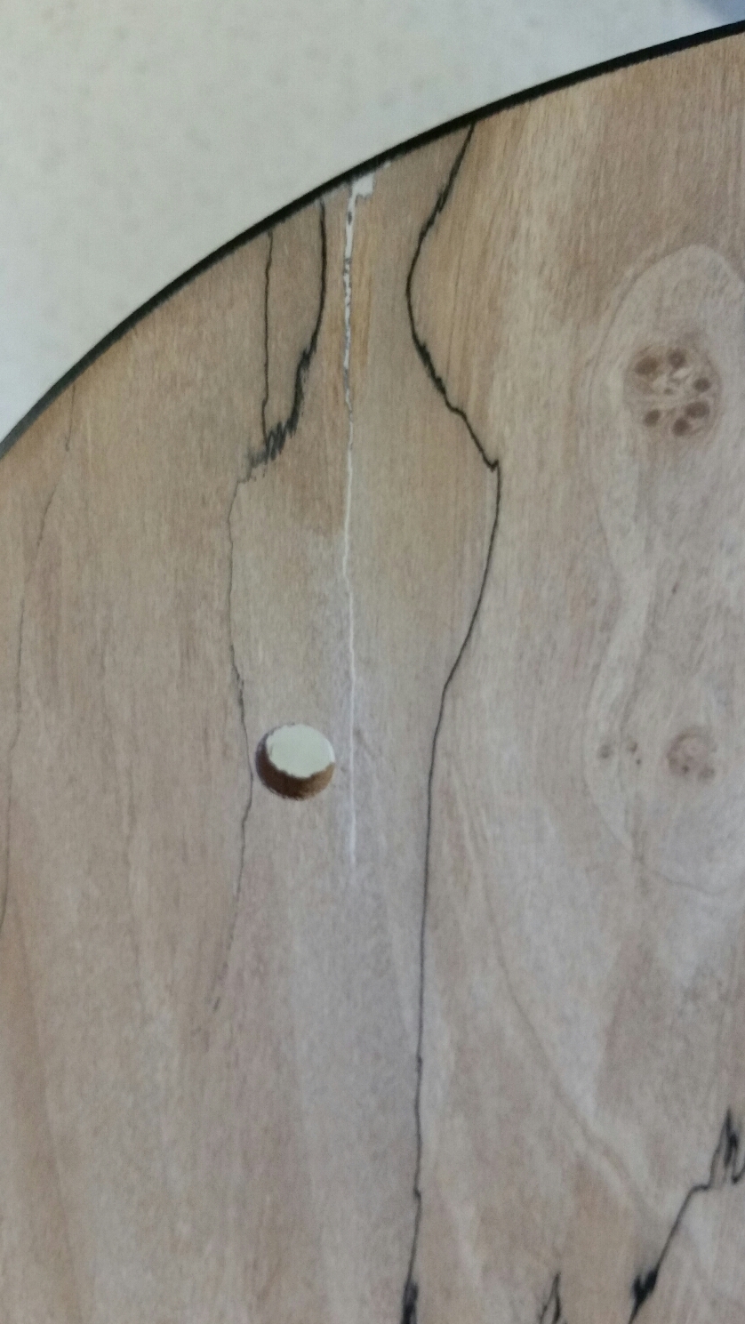 Whilst doing the crack I noticed an indentation kind of like a scrape dent not sure how it happened and I'm hoping it doesn't show to badly in the finish as I don't think using the steam iron on a thin veneer is the best idea.