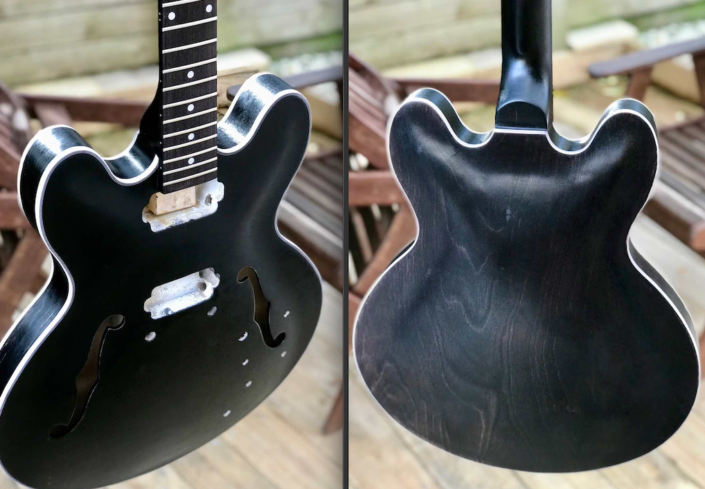If I was to use it again the top coat would be the neck stuff as it is supposed to be a stronger and harder finish. With all the stain and intensifier layers it stays very green and soft for ages.
