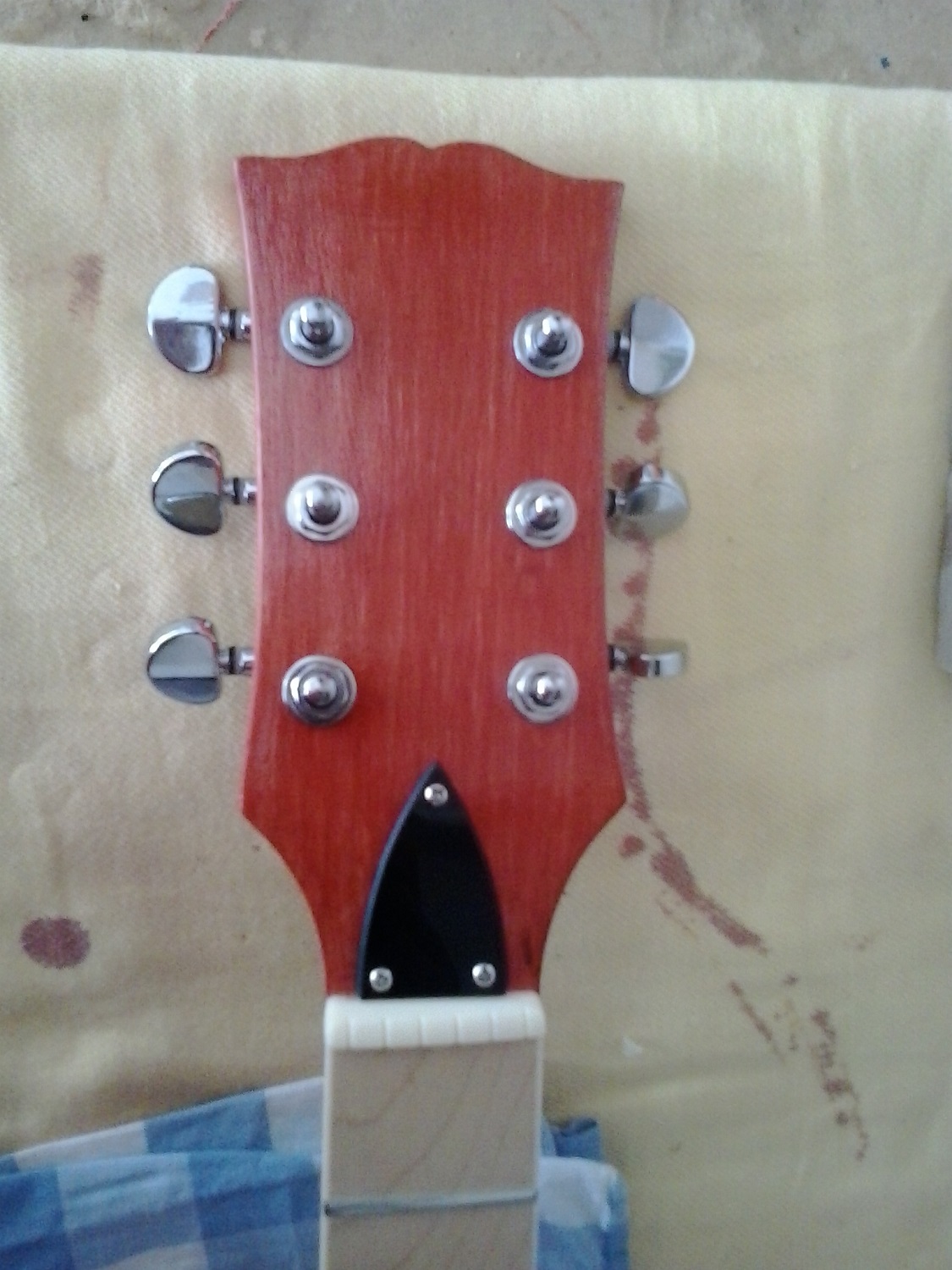 Noticed that the nut is raised at the bass E string - never seen that before. Another puzzle.Attachment 29330Attachment 29331