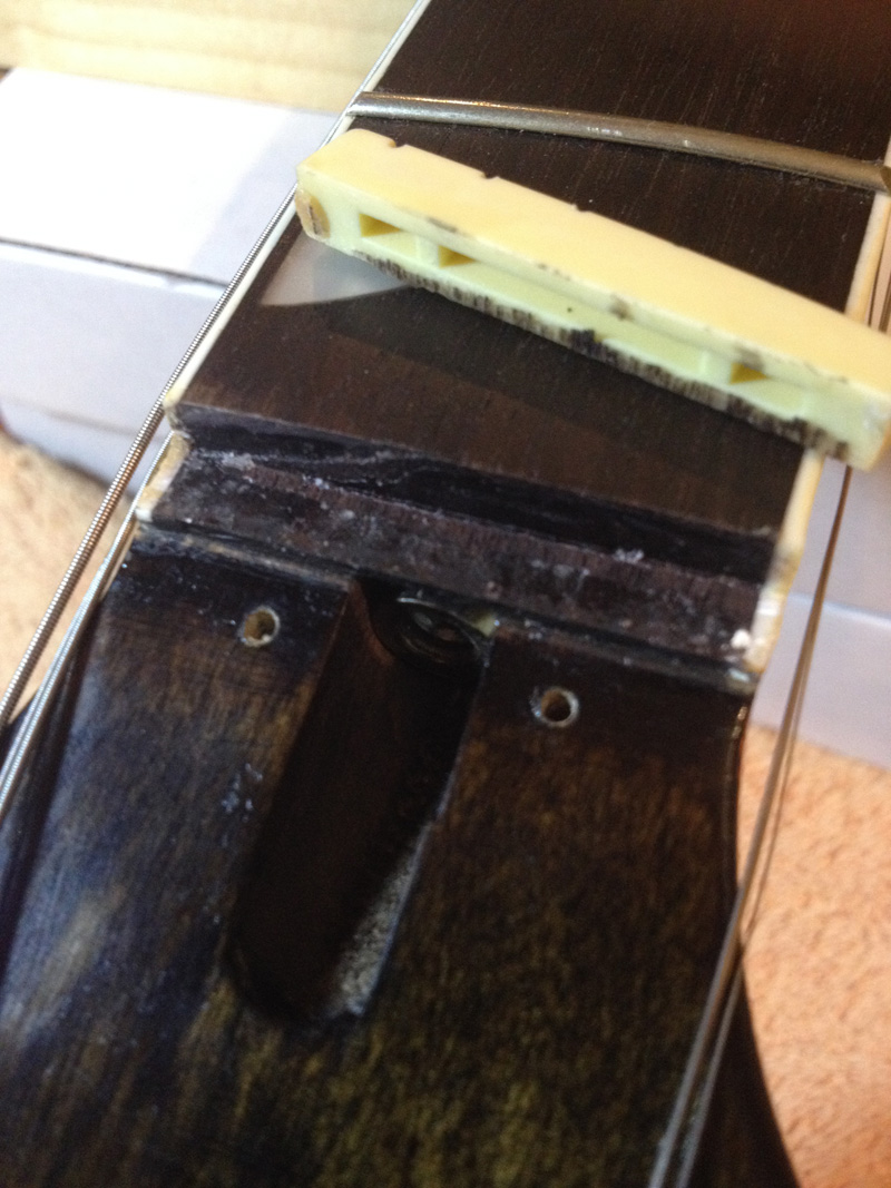 taped up the fretboard next to it, put a small block of wood on the fret side, and tapped towards the headstock.