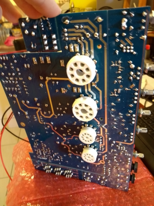 They designed this section to be broken off the main board, but installed close to it in a similar relative position. This would mean the valves are hard up against the rear of the front control panel, possibly coming close to (if not touching) the speaker.
