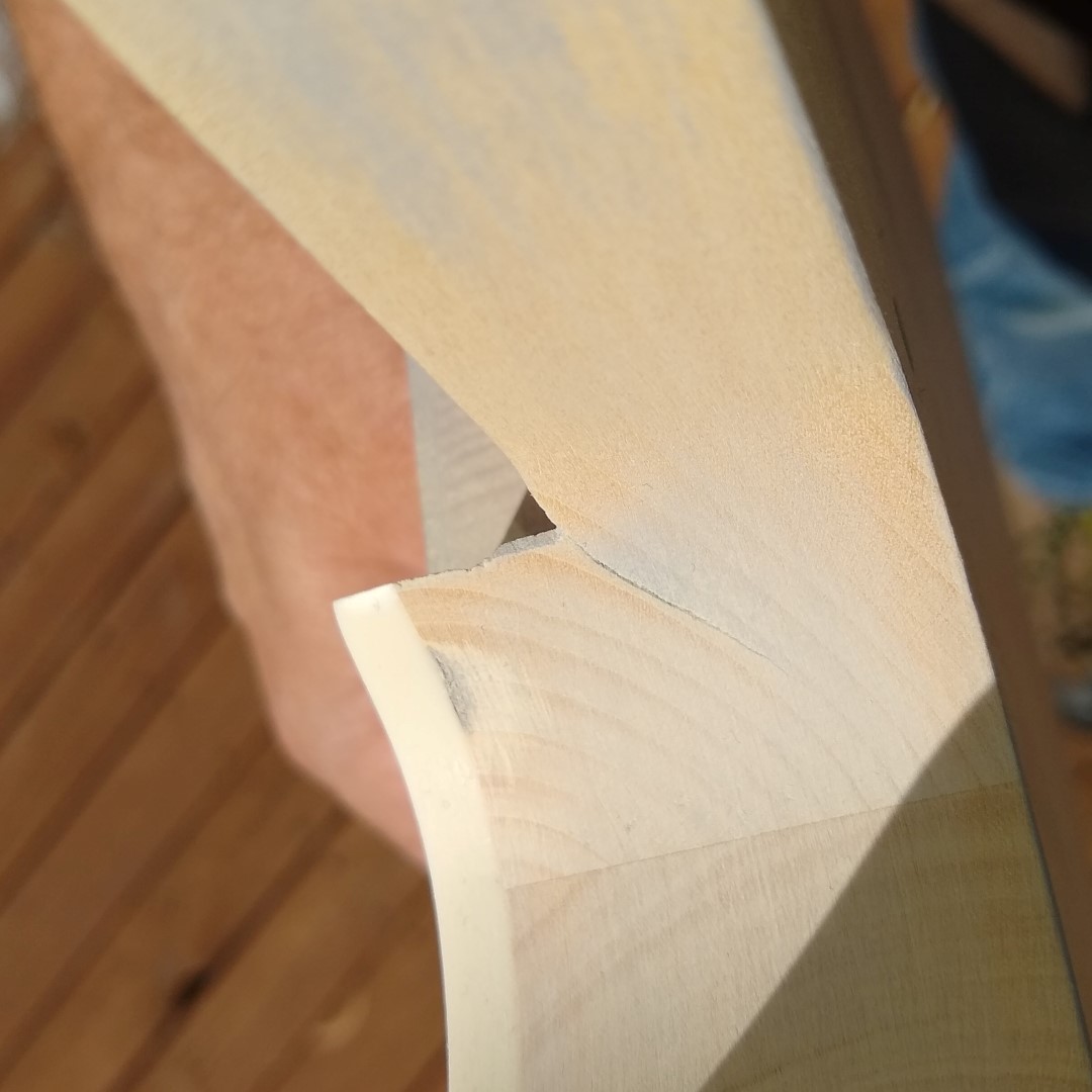 Well, I did gloss over the bit where I forgot to mask the binding! The sanding cleaned up most of it so only a small amount of scraping needed. I won't be doing that again 🙄