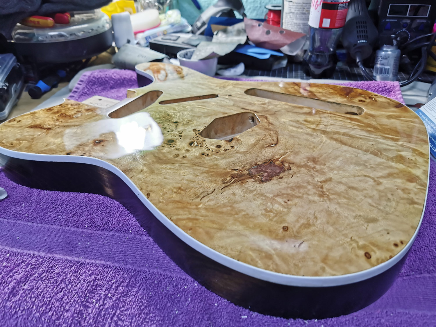 Oh, and 2 small and a half medium bottle of tru oil went into this thing... If you ever plan to build a burl veneer top guitar - for the love of small puppies, use a grain filler before tru oiling it! You will thank me later! ;)