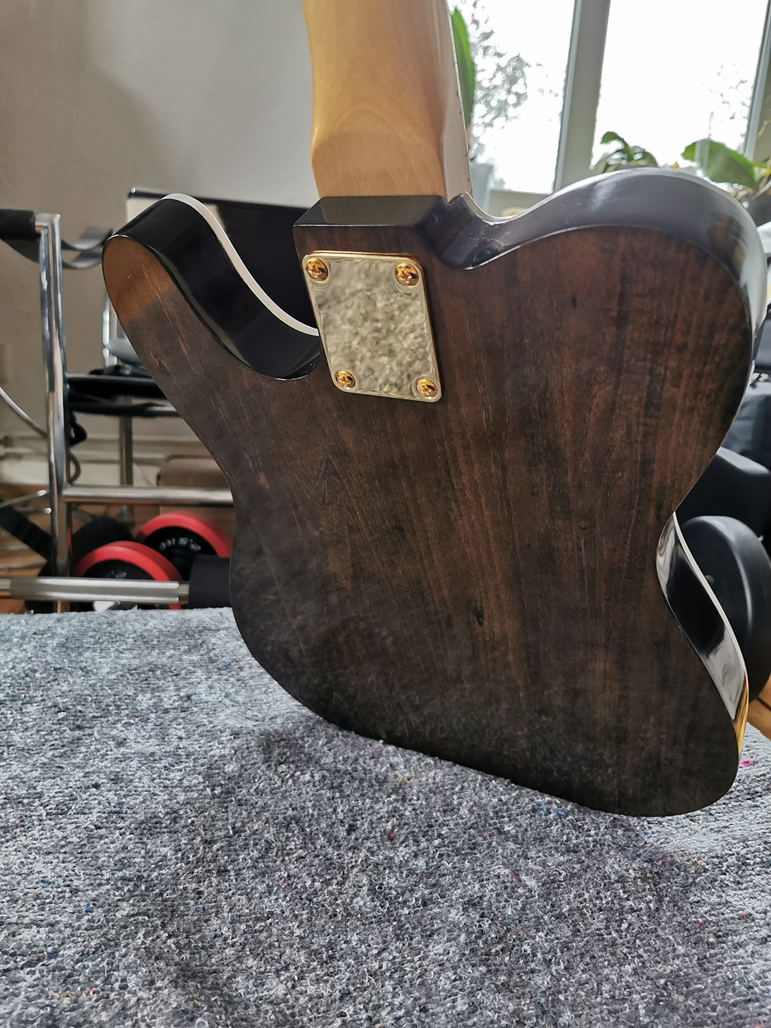 And while I still admire the feeling of the tru oil, I think it's too delicate as a finish. I know it can be fixed really easily compared to other finishes, but I can already see many fine scratches just from gently using the guitar. I know it will take a bit more time to completely cure and harden, but if there isn't a miracle happening, I don't think the tru oil is very durable for a guitar that's getting played. I'm not rough with my stuff (I think), I never dinged it, always put it on padded surfaces etc, but still, there are some marks.