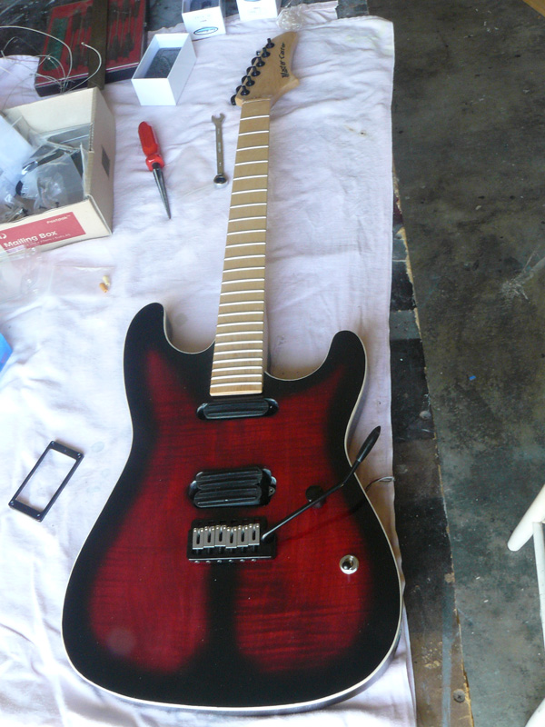 dry run ...waiting for the replacement 1 meg pot to arrive from the UK before I can start wiring. Won't fit the neck and bridge till I have it wired,so..no nut fitted yet either