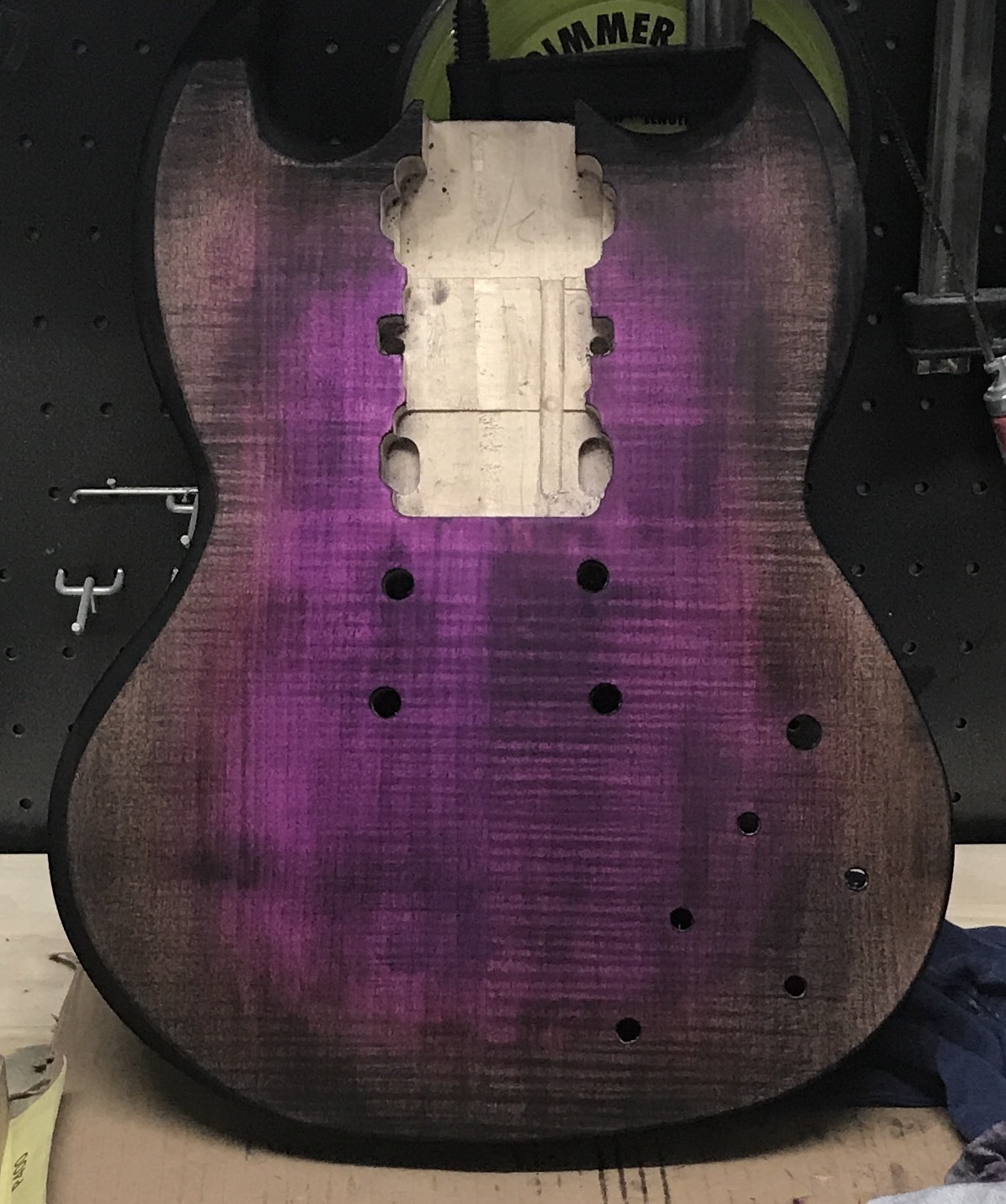 Back to the books for me 😭 So far I've done the staining, just working out which gloss clear to use. Currently have 2 testers on the go, dulux duramax and rust-oleum 2x. Am hoping to be able to do weekend work until she's done, can't wait to play her!