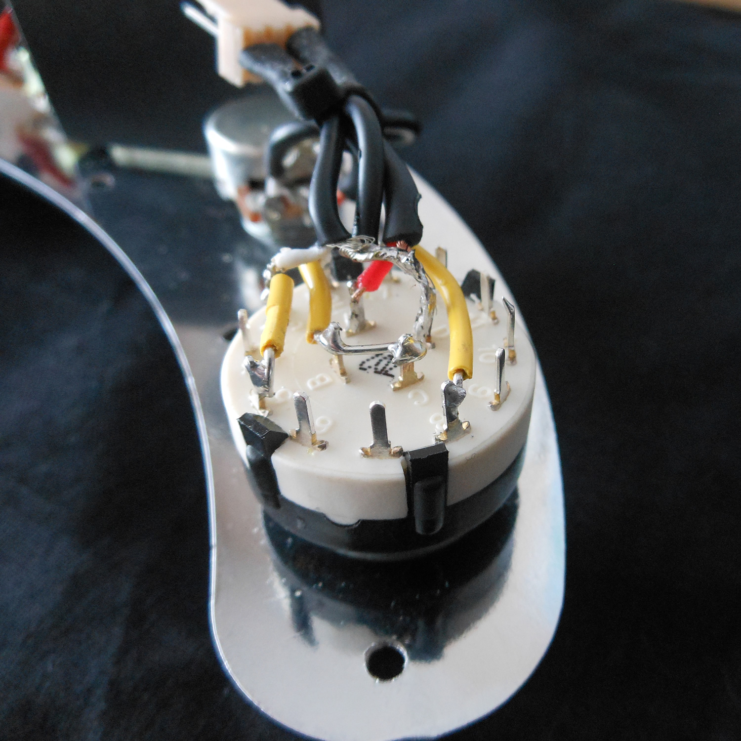 Unfortunately RalphH, that switch wiring won't work as-is with Waz's pickup as it's only 3-wire. The pickup coils are internally wired in series, with the 'third' wire connected to the centre connections between the two coils. So it can be tapped but cant be connected in parallel unless Waz takes the pickup apart and manages to wire it as a 4-wire pickup so there's fully independent access to both coils.